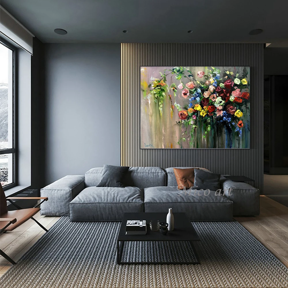 Ручная роспись розы Картина маслом на холсте абстрактные цветы настенные художественные картины большой размер украшение салона картина бесплатная доставка