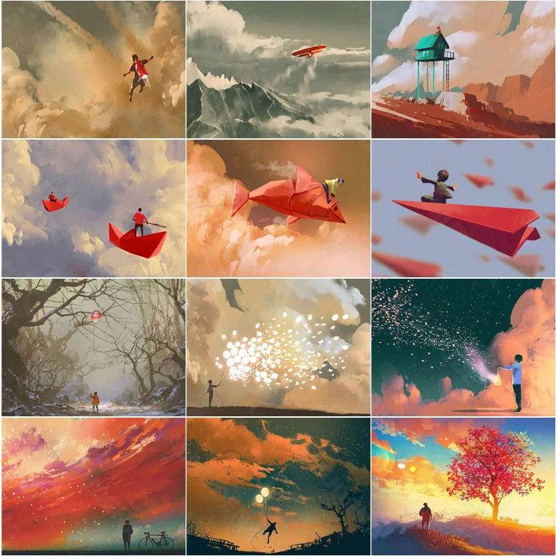 Алмазная живопись 5D "сделай сам", закат, Аврора и другие красивые ...