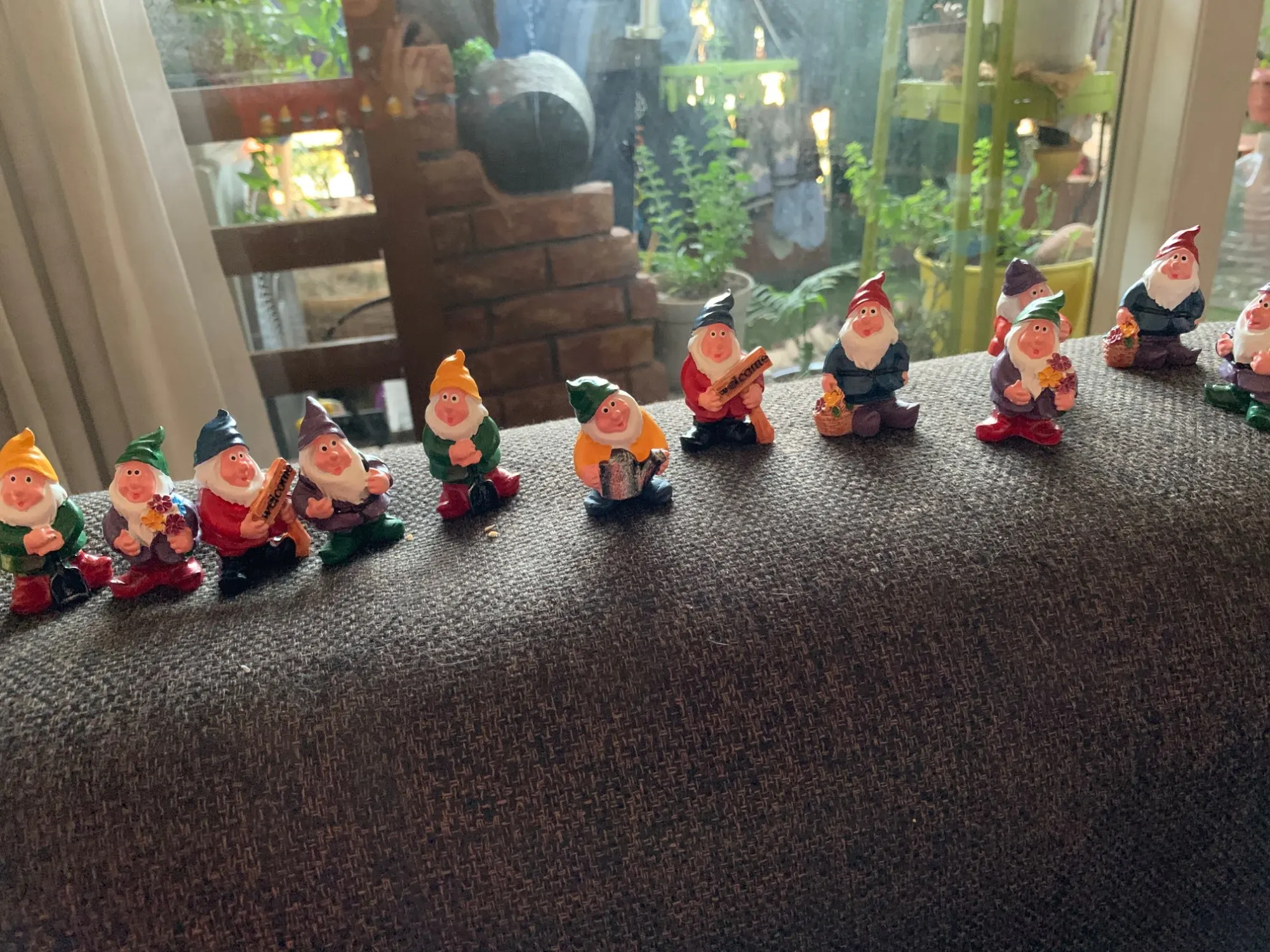 Семь гномов, Белоснежка, эльфийский сад, миниатюрные гномы, украшение статуи