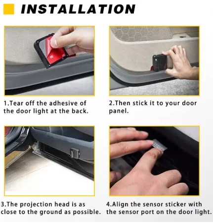 Ослепляющий светильник с логотипом и сигнальный светильник будут отображаться на земле, когда вы откроете дверь автомобиля, и он выключится, когда вы закроете дверь.