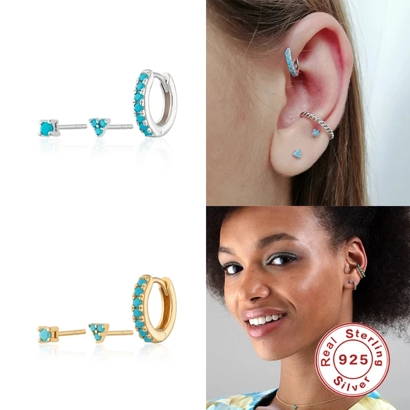 BOAKO 3 шт.компл. 925 стерлингового серебра Цвет бирюзовые серьги д...