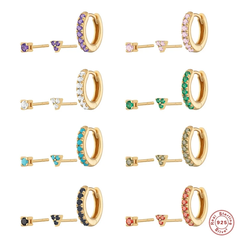 Женские серьги-гвоздики из серебра 925 пробы с фианитами, трендовые свадебные серьги фиолетового/зеленого/розового цвета, украшения для пирсинга, 2021