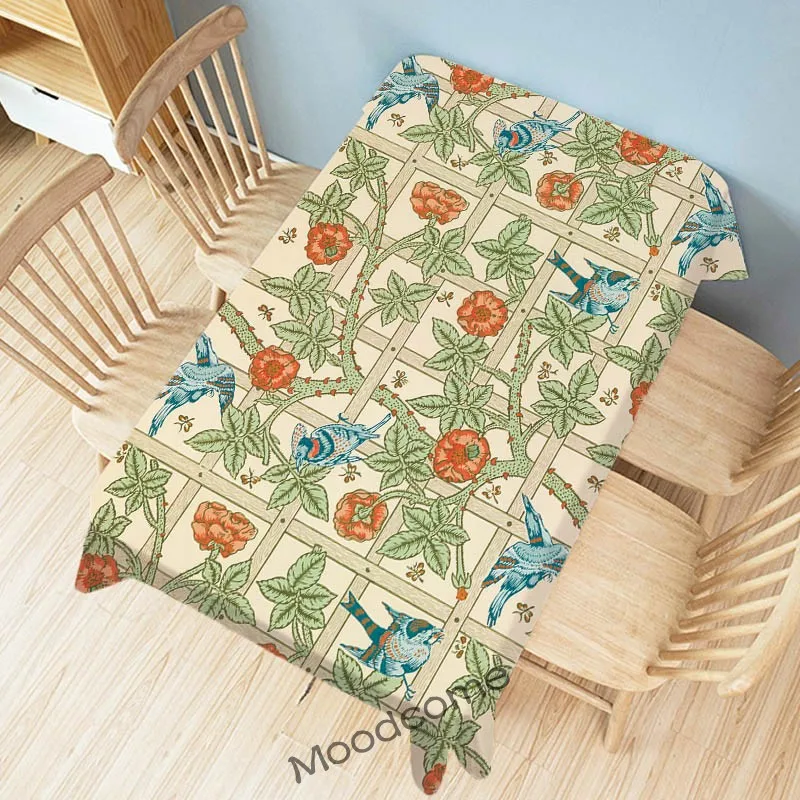 Классический Вильям Моррис, птица, листья, цветок, цветочный узор, водостойкий льняной настенный художественный гобелен, чехол для мебели, Настольная скатерть