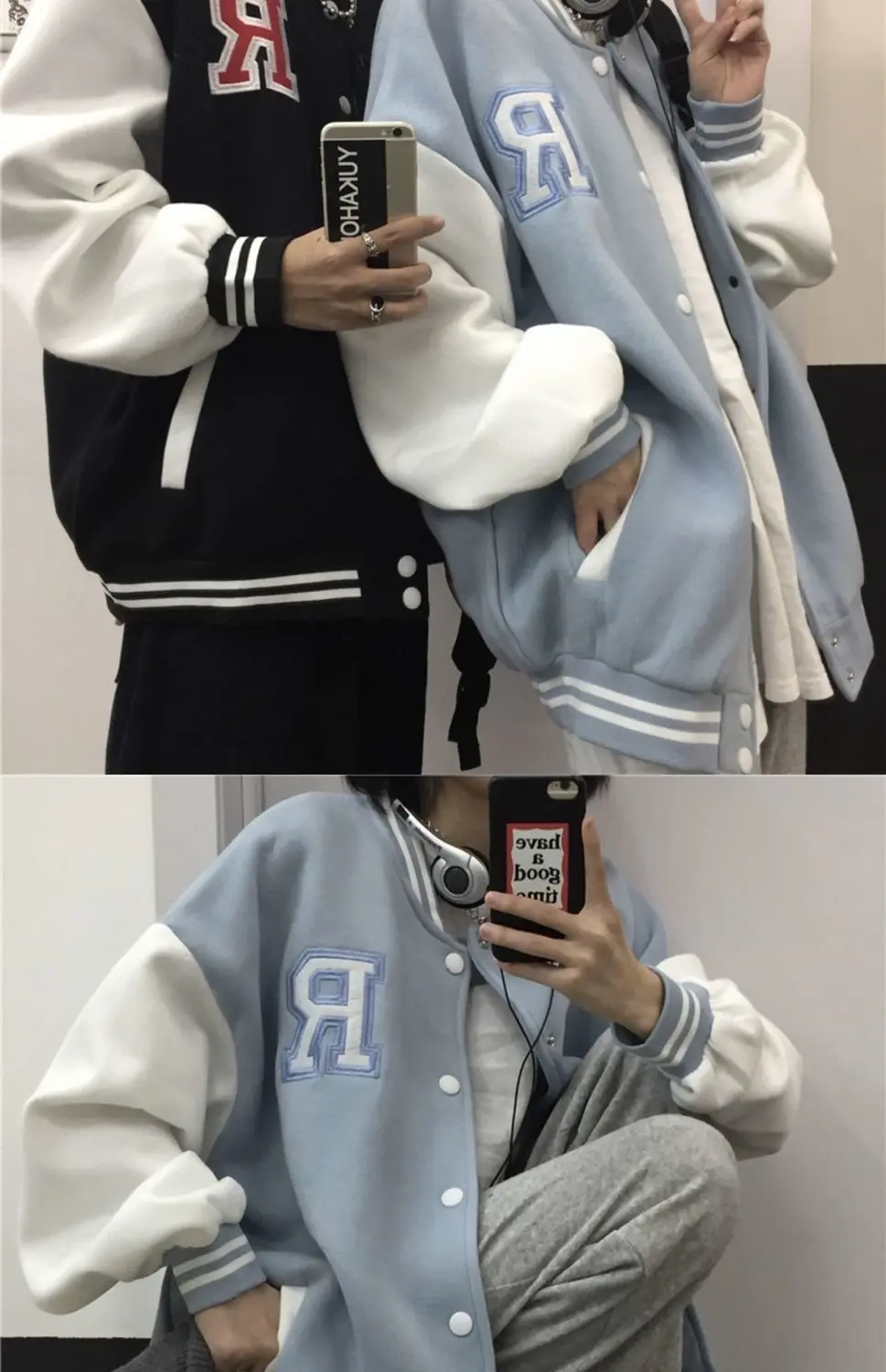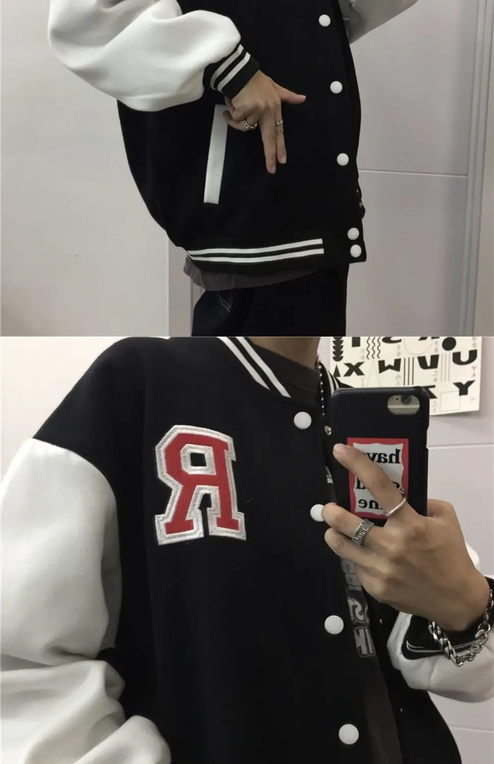 Куртка-бомбер мужская, женская, мужская, куртка в стиле Харадзюку, с надписью R, свободная, уличная одежда, размера плюс
