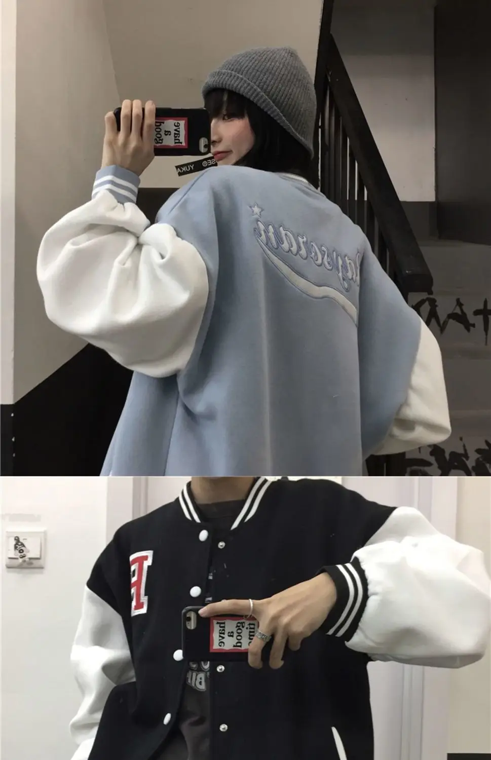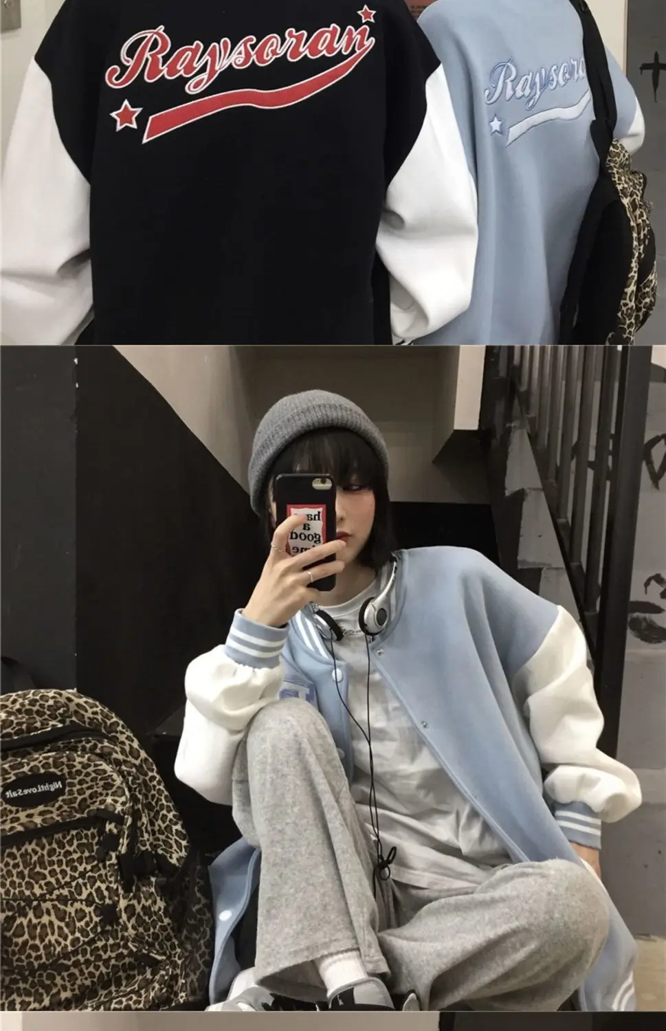 Женская бейсбольная куртка, повседневная свободная форма в Корейско...