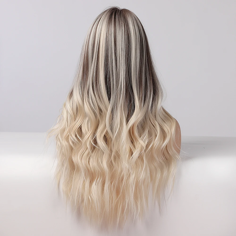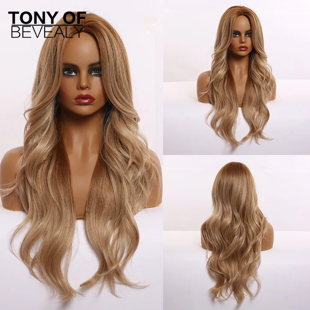 Длинные волнистые волосы от коричневого светильник лого блонд, парики с Омбре, натуральные синтетические парики средней длины для чернокожих женщин, термостойкие парики для косплея