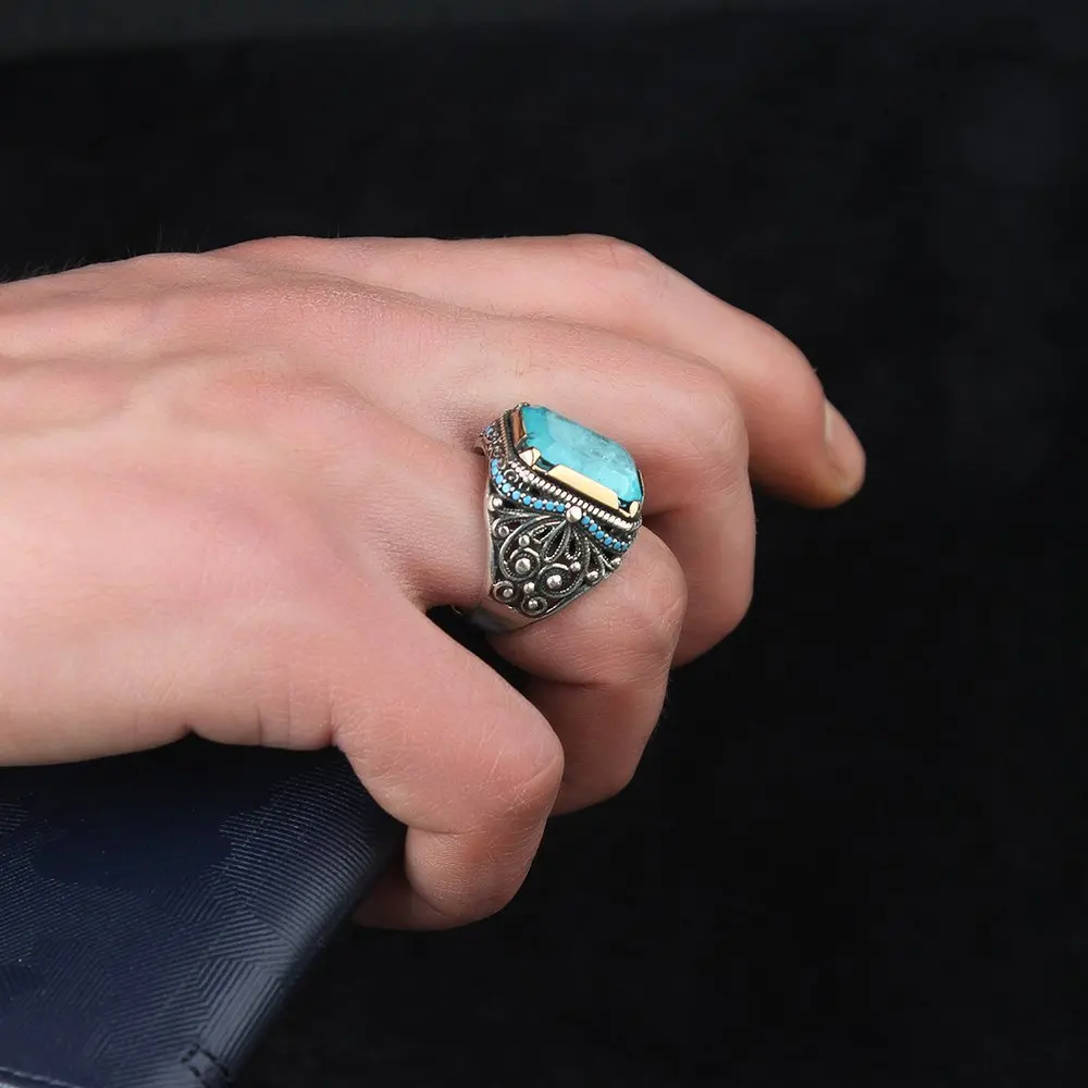 Paraiba традиционной ручной работы турецкий 925 пробы серебряные перстни подарок ювелирных изделий из Турции для Для женщин Мужчины
