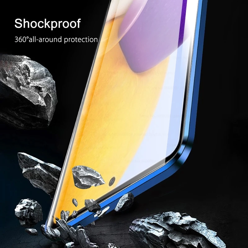 Магнитный чехол для samsung galaxy a12, a32, a52, a72, 360 °, 2021 градусов, металлический бампер, двусторонний защитный чехол из стекла