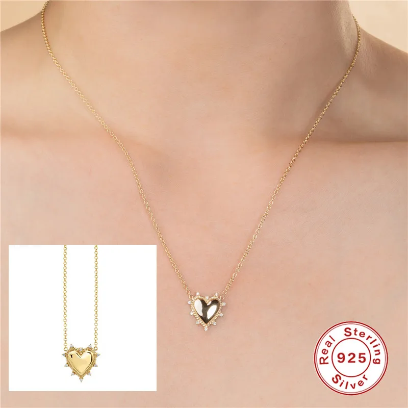 Ожерелье BOAKO S925 из стерлингового серебра для женщин синеекрасное любовное сердце цепочка из золота с цирконием очаровательные ювелирные изделия подарок для девушки на день рождения