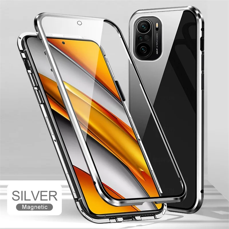 Pocof3 чехол 360 ° полное покрытие Адсорбция Магнитный флип-чехол для poco poxo little f3 f 3 металлический бампер двухсторонний стеклянный чехол