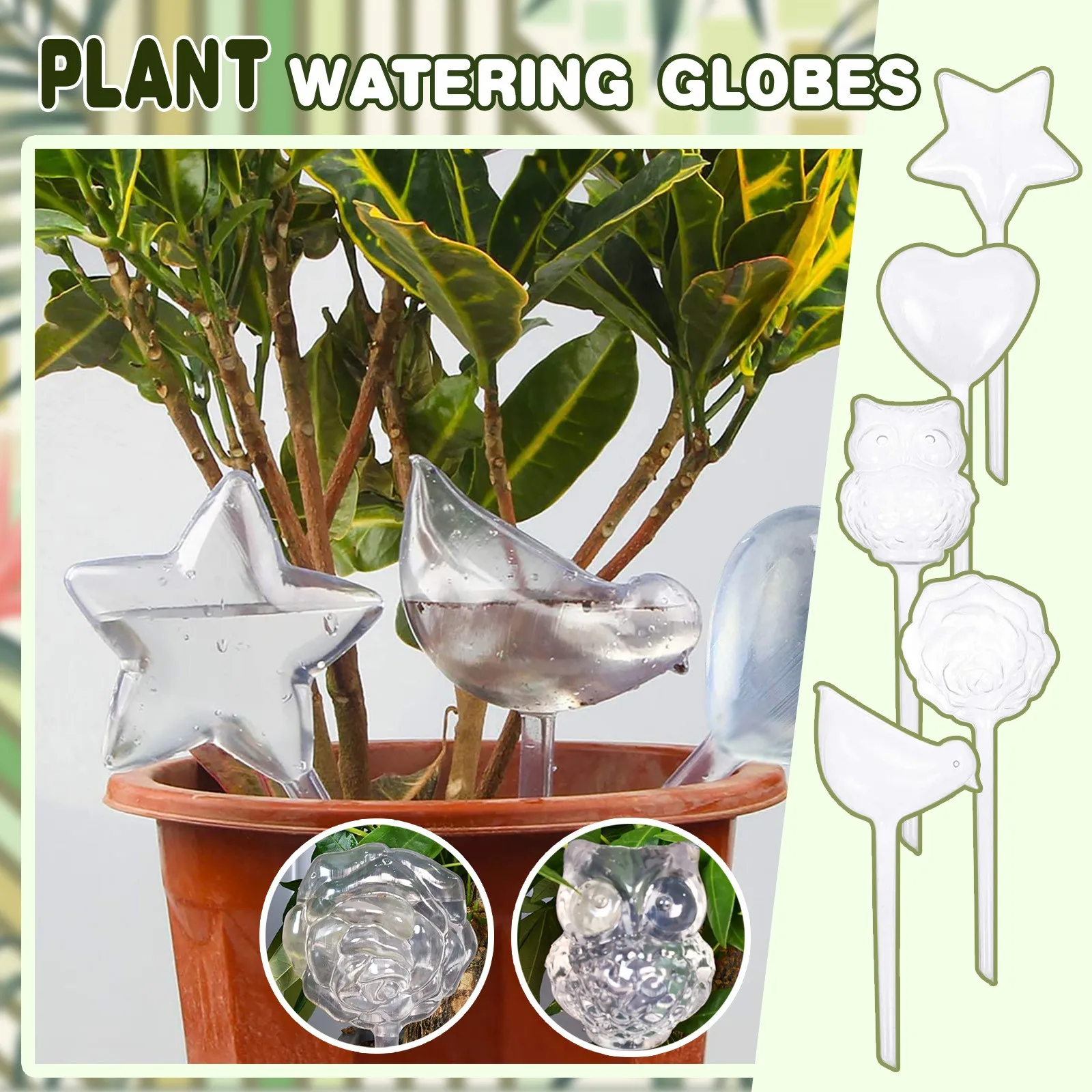 Дизайн в форме животных: птица, роза, сердце, Сова и прозрачная пятиконечная звезда. Это простой дизайн из натурального материала, без сомнения, может идеально сочетаться с вашими цветами и растениями, не только хороший помощник для ваших растений, но и привлекательное украшение, получит много комплиментов.