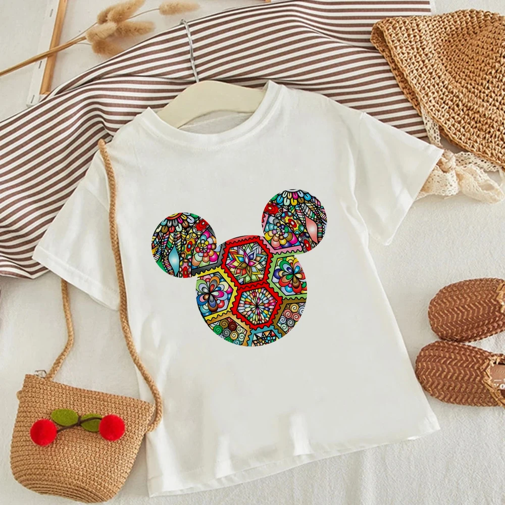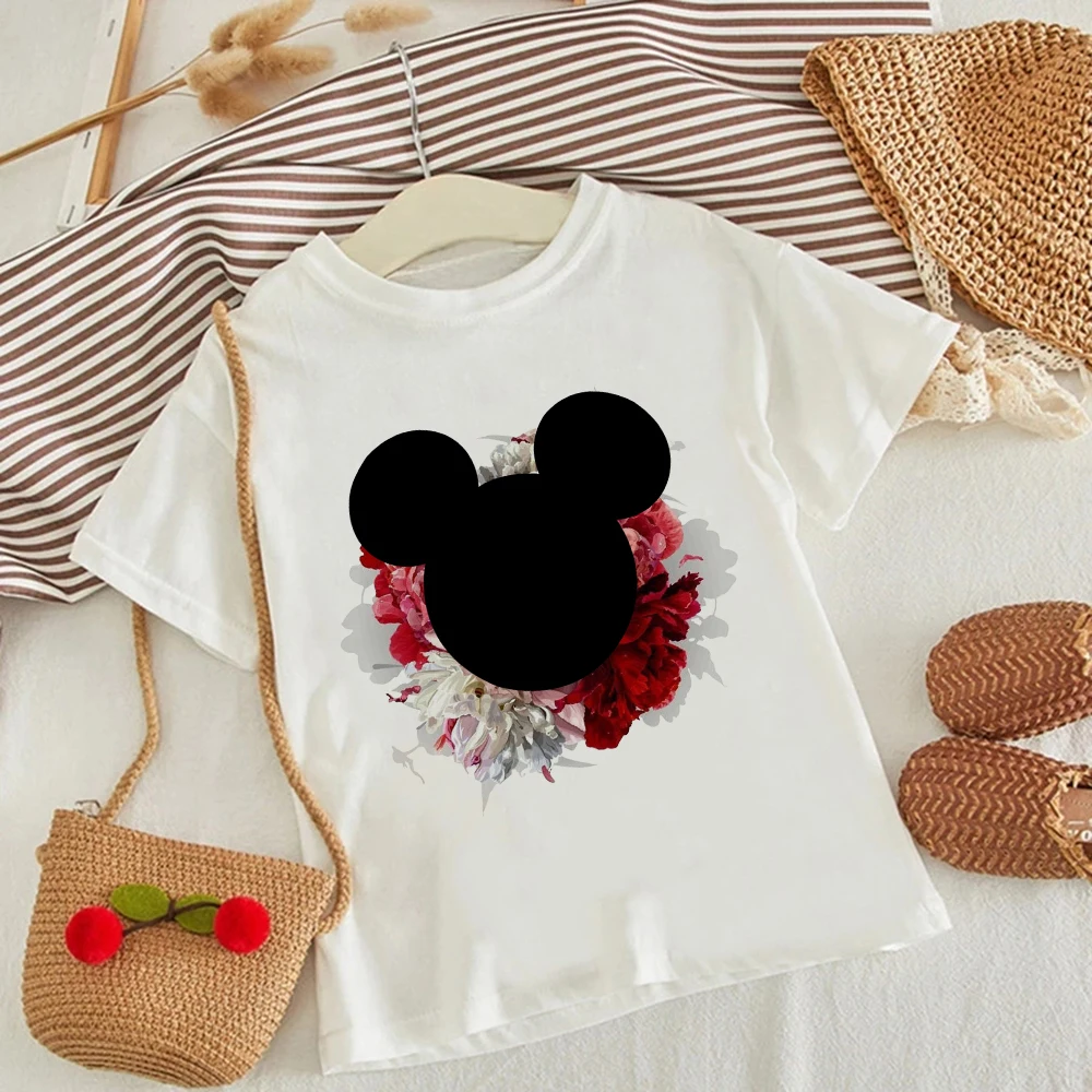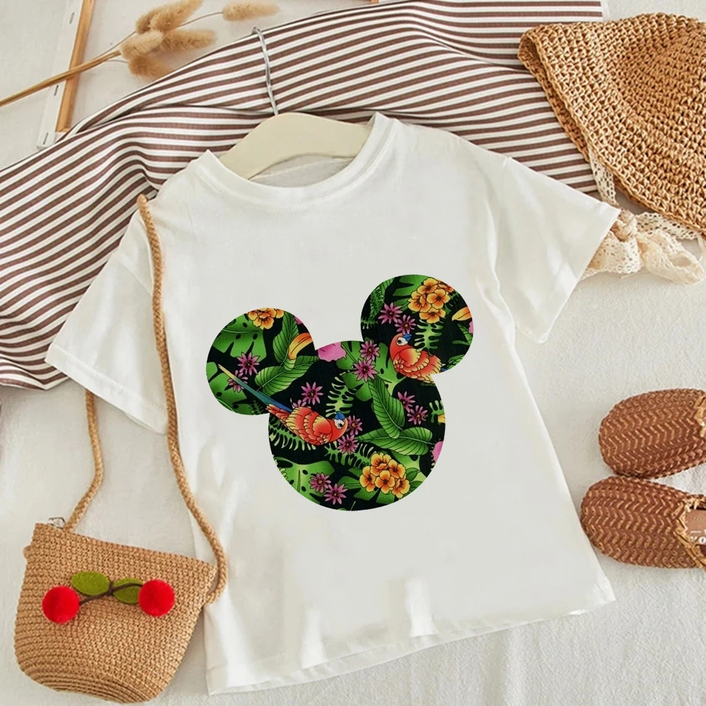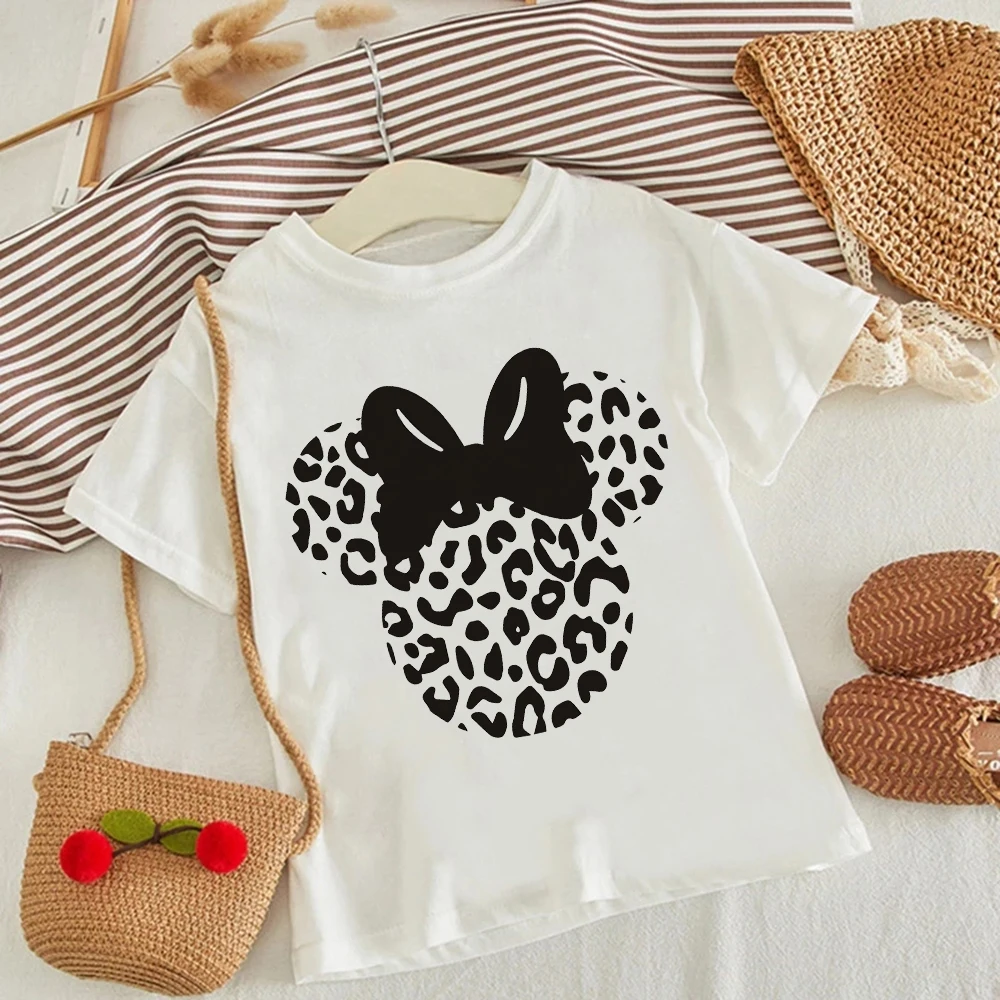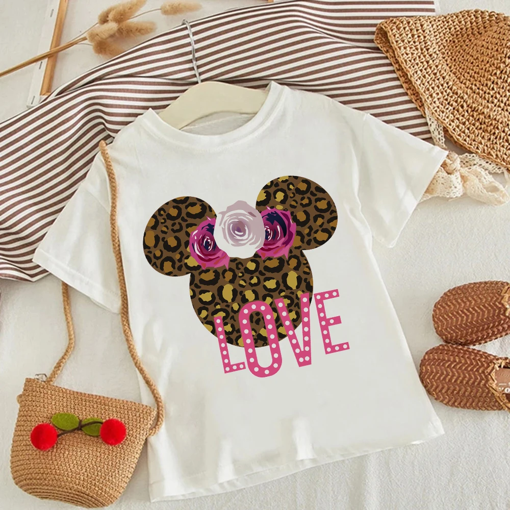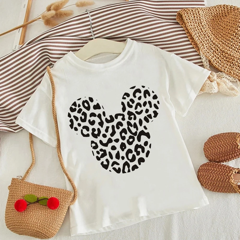 Футболка с Микки Маусом, летняя футболка с леопардовым принтом для детей, модный топ с короткими рукавами для малышей, повседневная футболка с героями мультфильмов, футболка для мальчиков и девочек