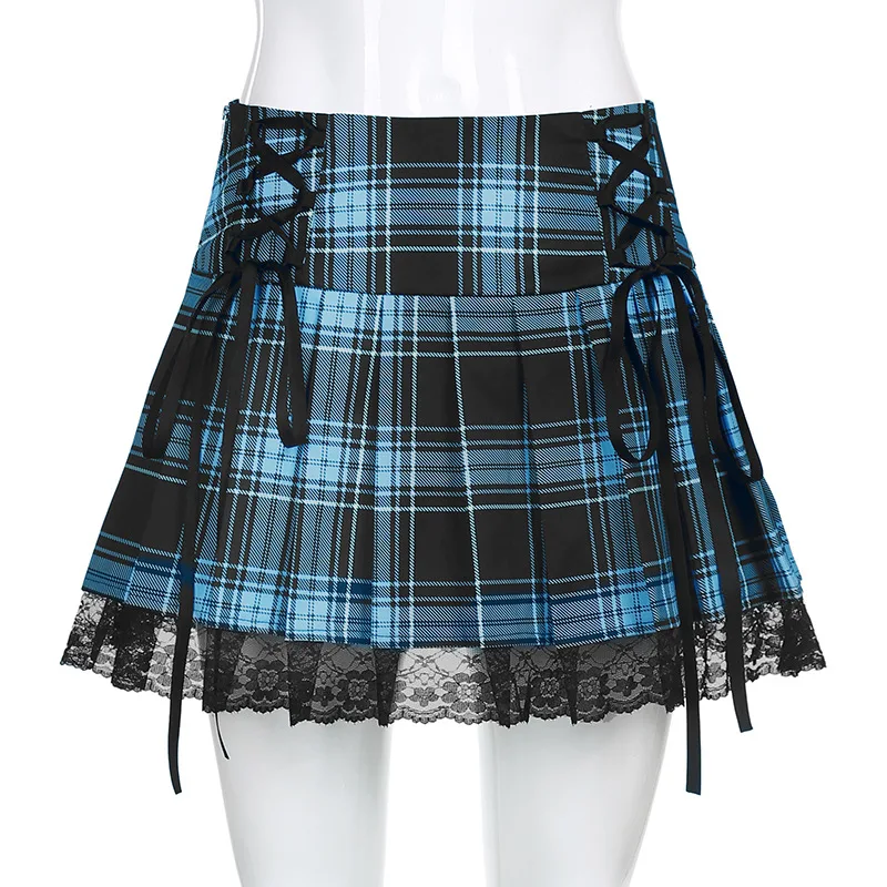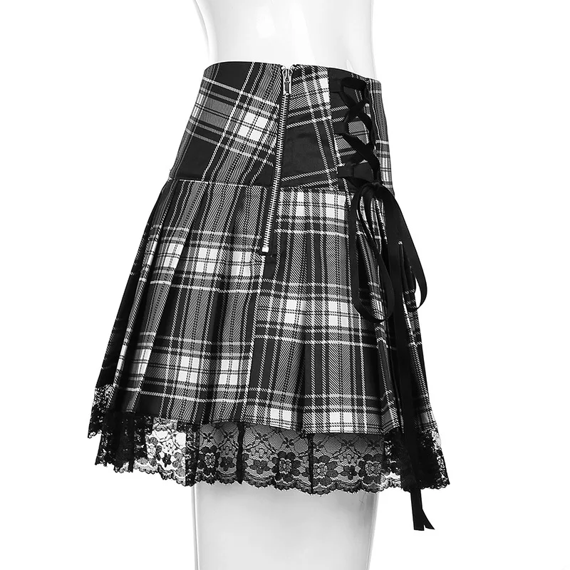 InsDoit торгового центра в готическом стиле гранж Летняя мини юбка в стиле панк; Большие размеры Y2K в винтажном стиле Харадзюку уличная одежда юбка с завышенной талией для девочек повязки Сексуальная юбка