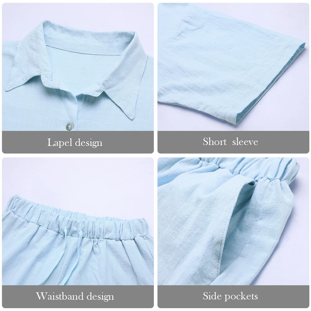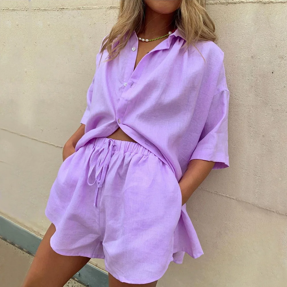 Style 3Single Breasted Shirts + Short High Waist Bloomers Mini Shorts