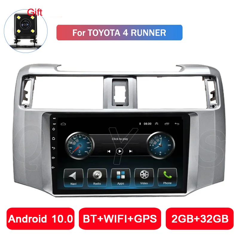Магнитола на Android 10, стерео, автомобильный мультимедийный плеер, головное устройство для Toyota 4 runner 2010, 2011, 2012, 2013, 2014, 2015, 2 ГБ + 32 ГБ, Wi-Fi, бесплатные карты