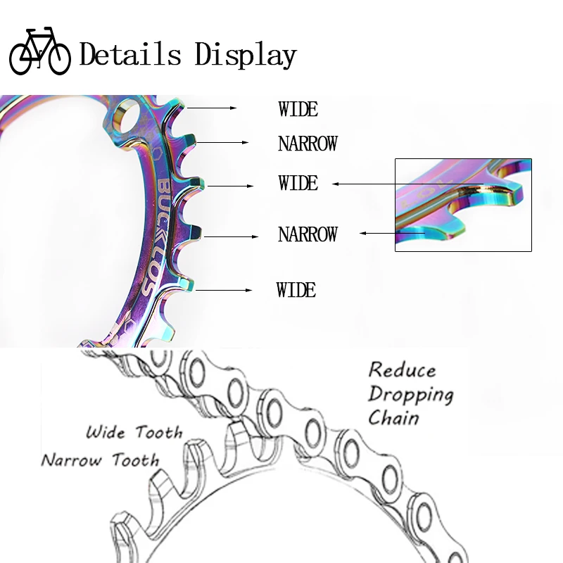 Звездочка цепная BUCKLOS MTB, узкая, широкая, 104BCD, овальная, кру...