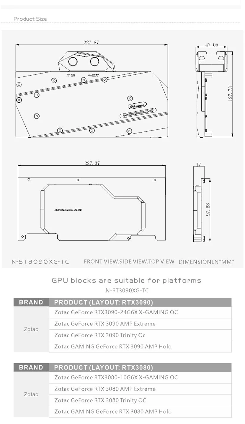 Блок водяного охлаждения Bykski GPU для Zotac RTX 3090 3080 Gaming ...