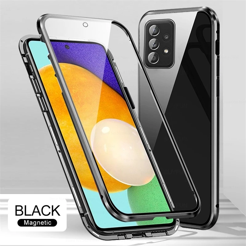 Двухсторонний стеклянный (Передний + черный) металлический магнитный чехол для Samsung Galaxy A52 4G/5G 2021 6,5 Дюймов