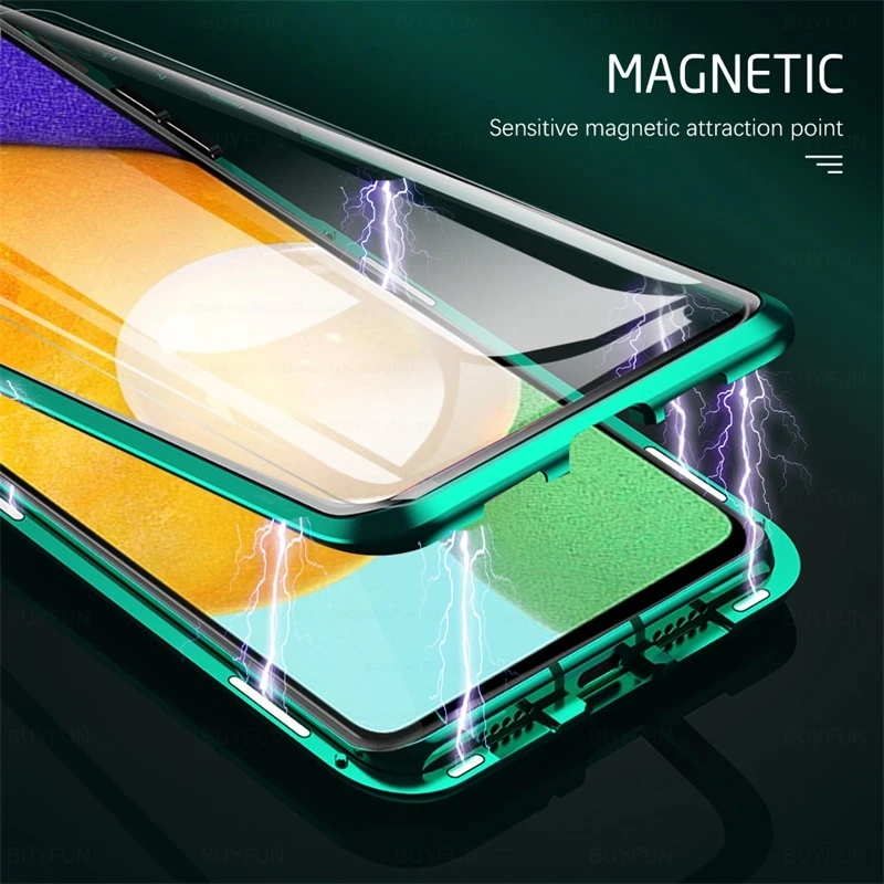 Чехол a 52, 360 °, полный корпус, адсорбция, Магнитный флип-чехол для samsung galaxy a52 2021, металлический бампер, двухстороннее стекло, защитный чехол