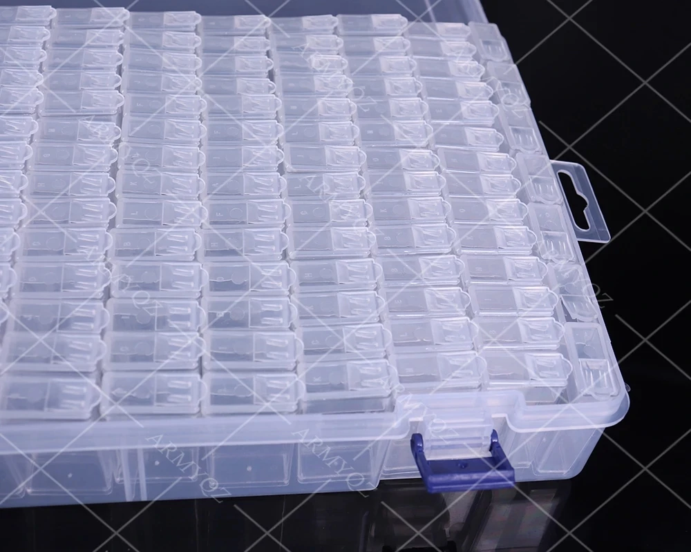Легко храните алмазные дрели в одной коробке, минимизируя беспорядок вокруг вашего кабинета или гостиной, используя контейнер для хранения алмазов 124 Gird.