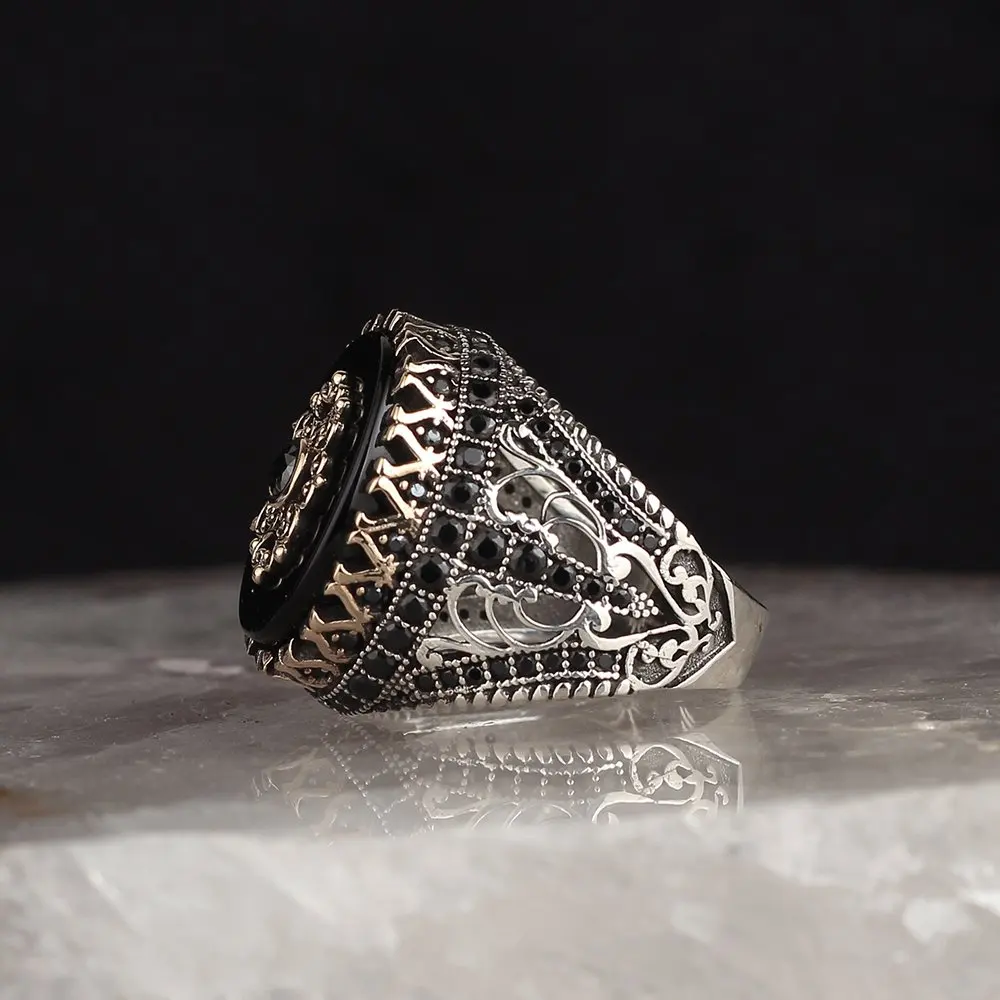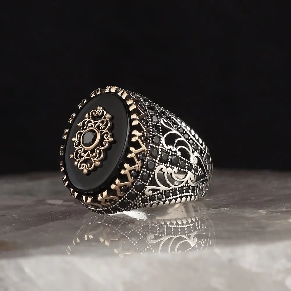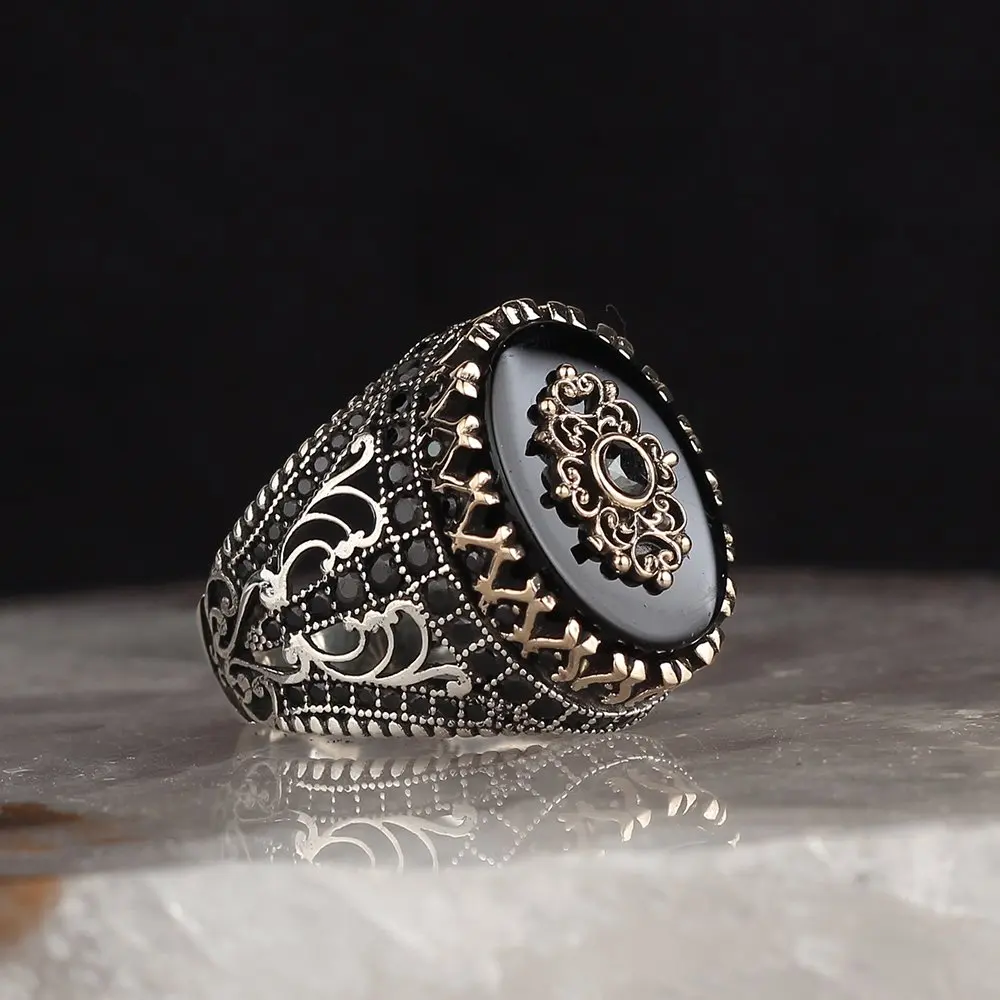 Кольцо-печатка ручной работы из традиционного турецкого серебра 925 пробы с ониксом, ювелирные изделия, подарок из Турции для женщин и мужчин