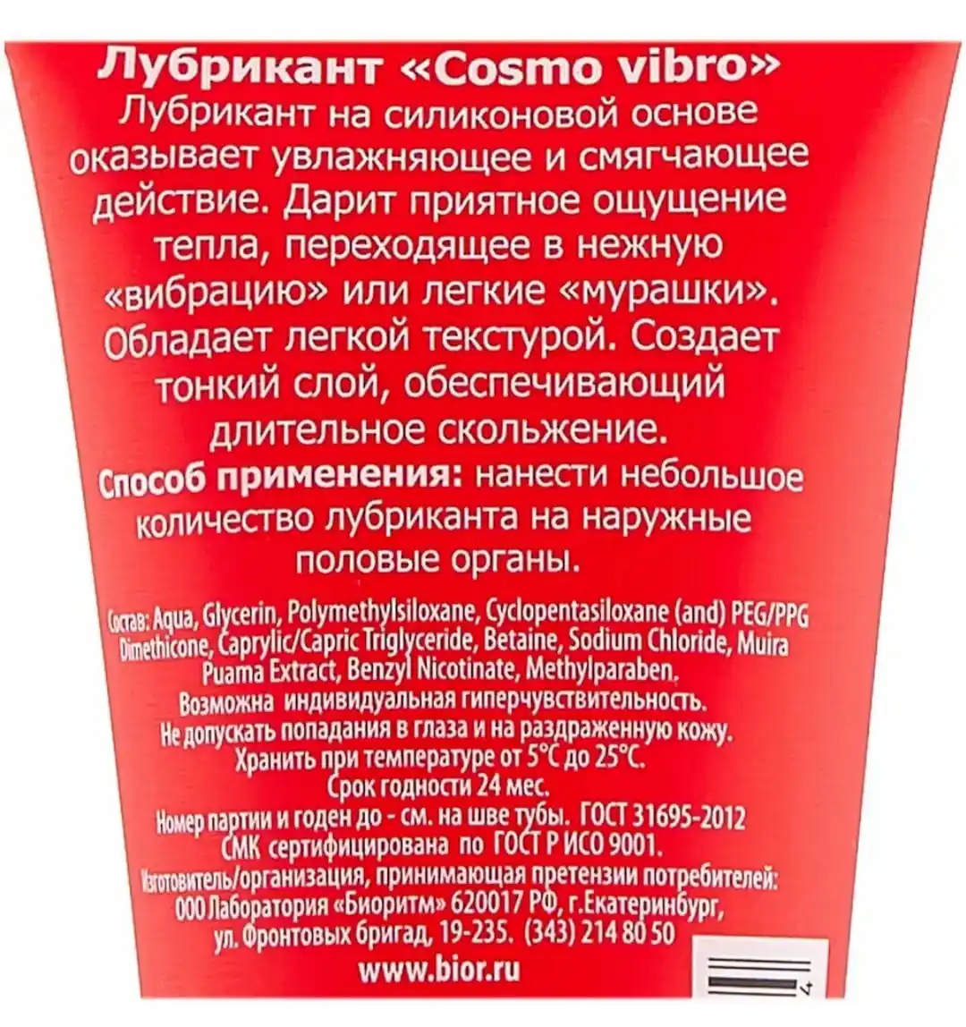 Лубрикант возбуждающий COSMO VIBRO для женщин 25г гель смазка интим...