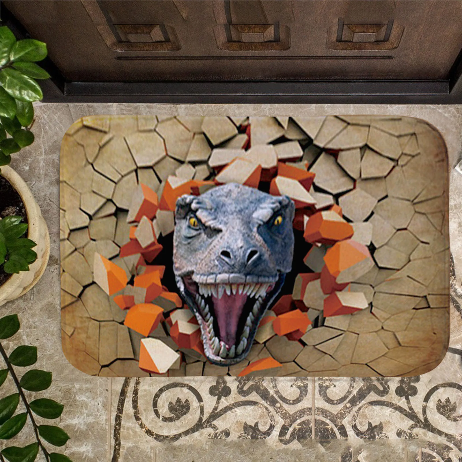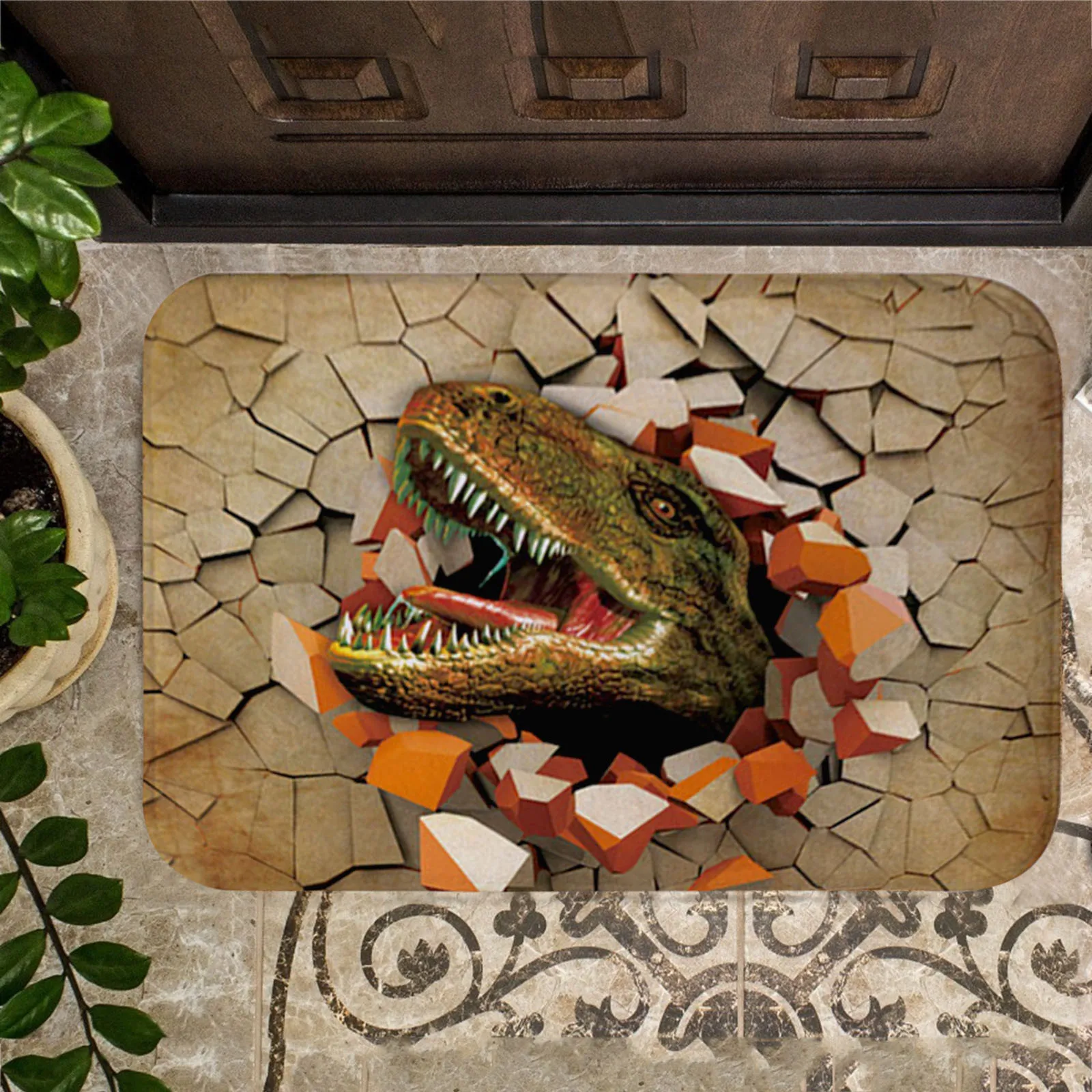 Домашние фланелевые напольные коврики, 3D рисунок динозавра, приветственный коврик, ванная комната, нескользящий ковер для кухни, коридора, для улицы и помещения, 60 см x 40 см