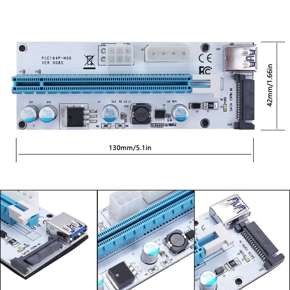 Райзер VER008S 3 в 1 Molex 4Pin Sata 6PIN PCIe PCI-E PCI Express, карта 1x до 16x, USB 3,0, кабель для майнинга BTC