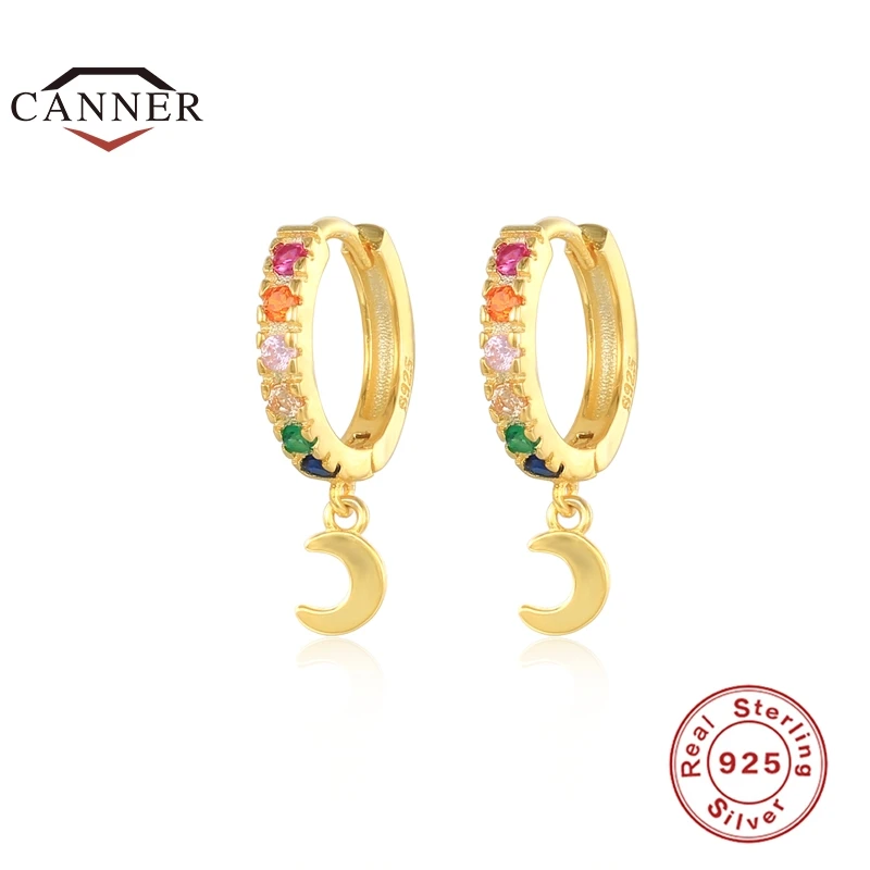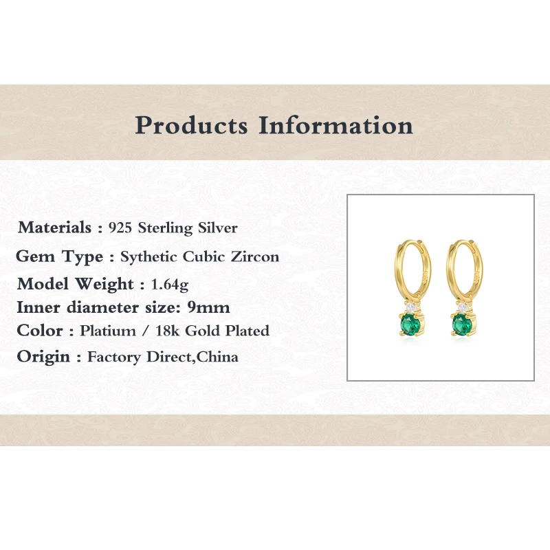 Серьги-кольца женские из серебра 100% пробы, с фианитом