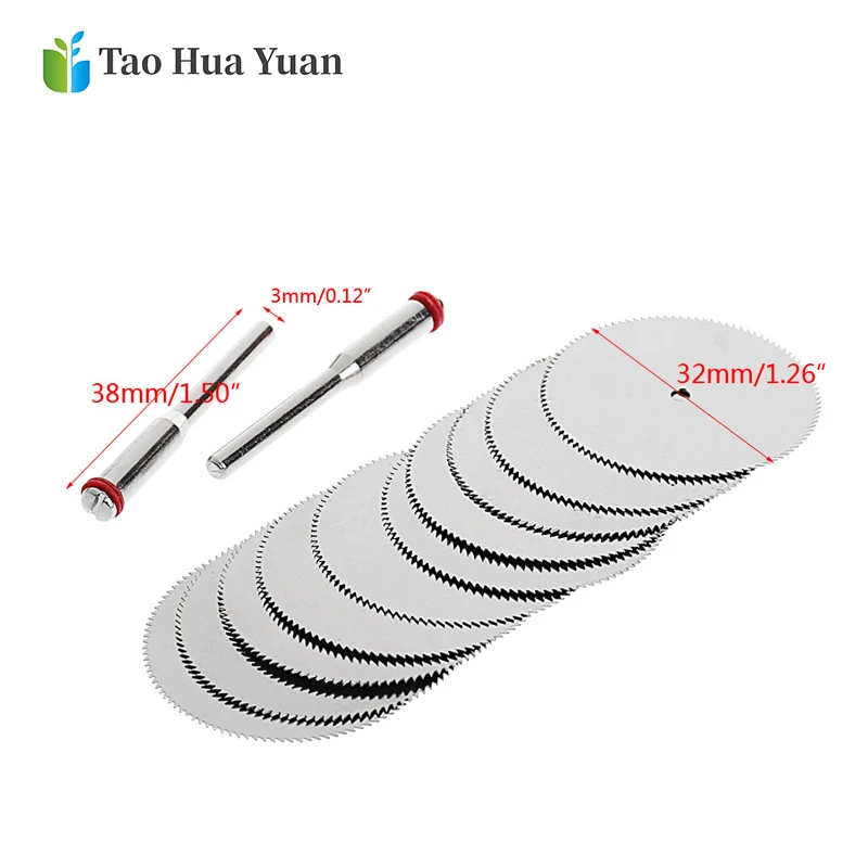 3 ) :10 шт. x 32 мм диск для деревянной пилы + 2 шт. стержень Dremel вращающийся режущий инструмент