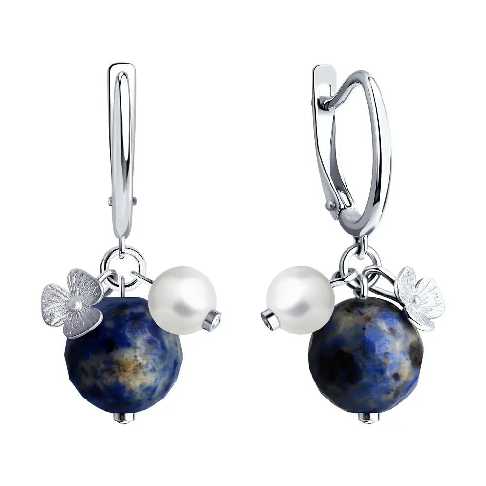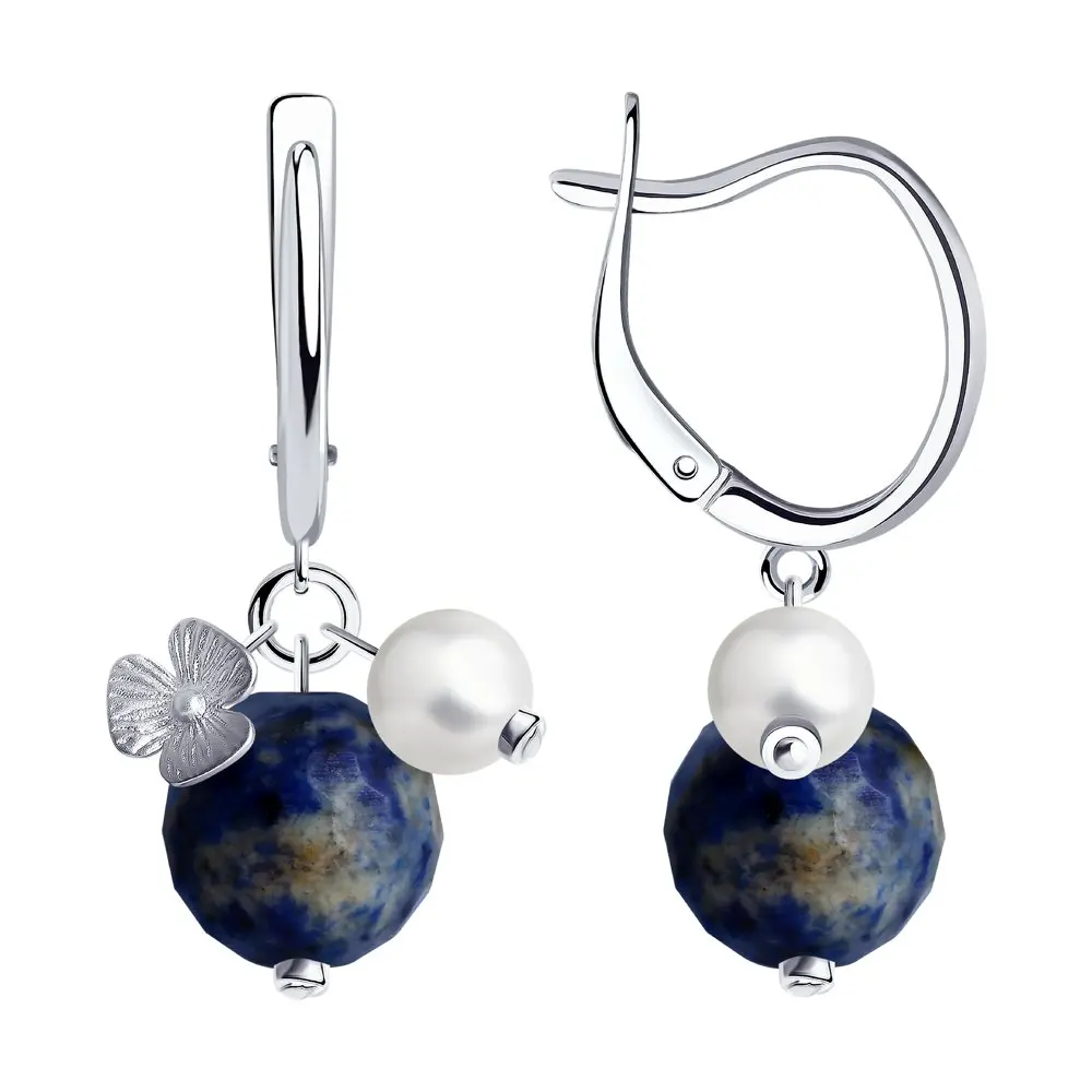 Серьги SOKOLOV из серебра с содалитом и синтетическим жемчугом