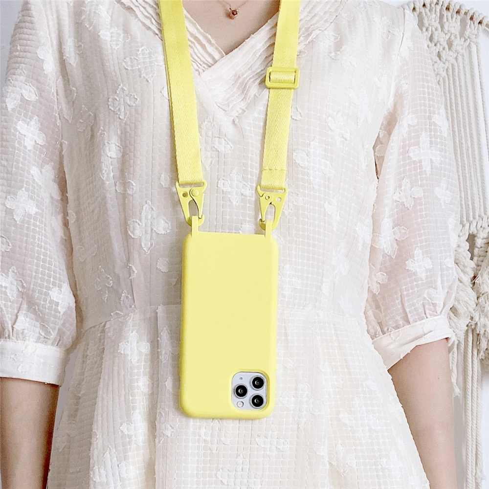 Чехол для телефона со шнурком и ремешком для iphone 12 Pro Max 12, мини-чехол из жидкого силикона с подвеской через плечо для iphone 11 XR XS