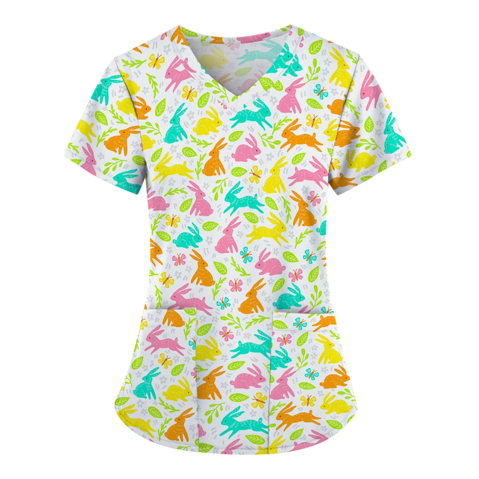 Футболка женская с коротким рукавом и V-образным вырезом, повседневный топ для медсестер, рабочая форма для зоомагазина, A50
