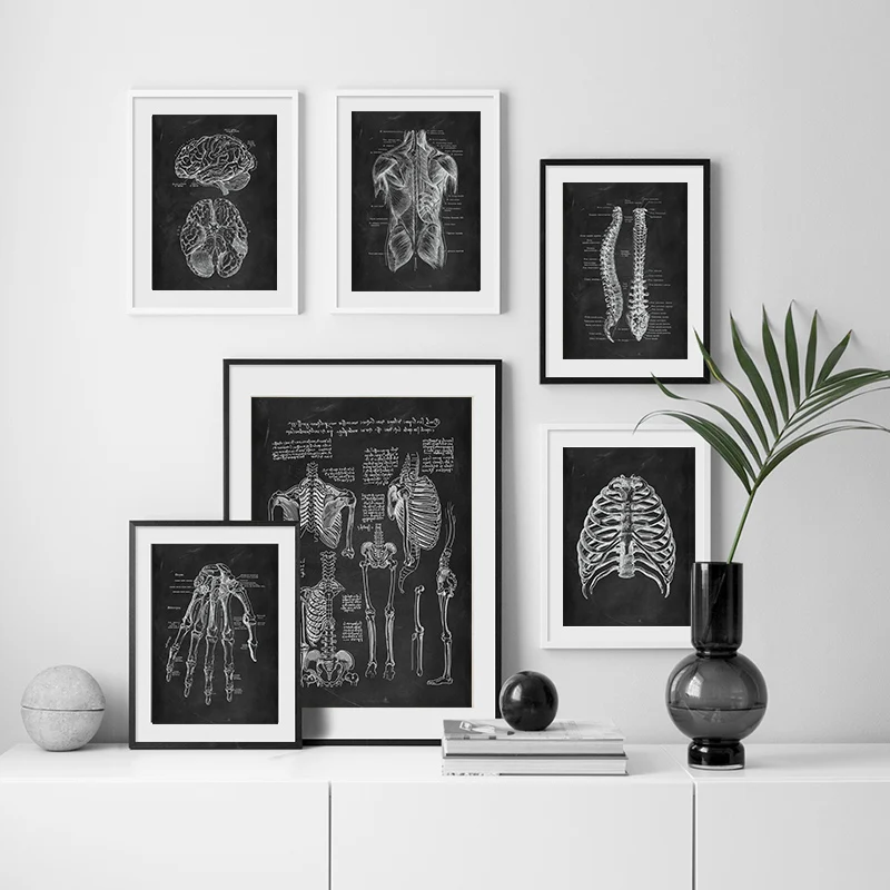 Черно-белое изображение анатомии человека, настенное изображение ме...