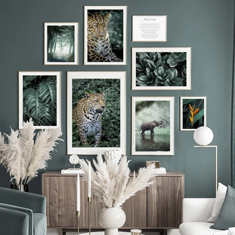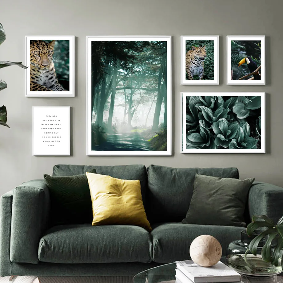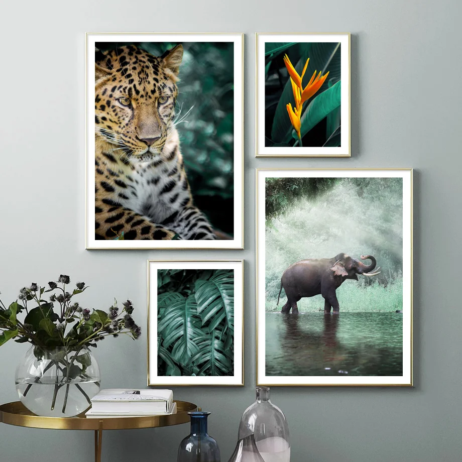 Джунгли Леопард слон Тропическая Птица зеленое растение скандинавский плакат настенный художественный Принт Холст Картина Декор картинки для гостиной