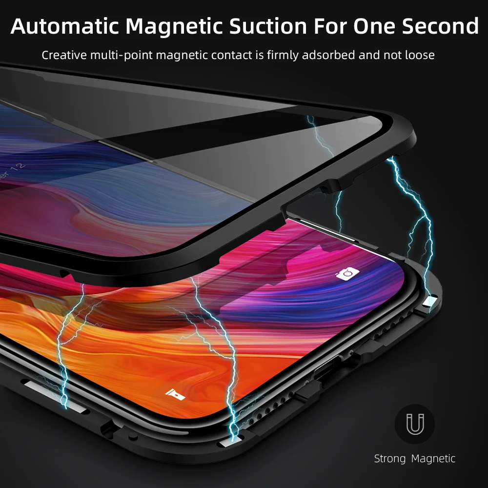 360 magnetic protection for mobile phone case + double-sided 9H tempe