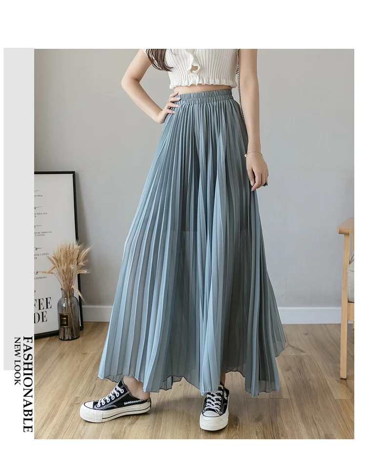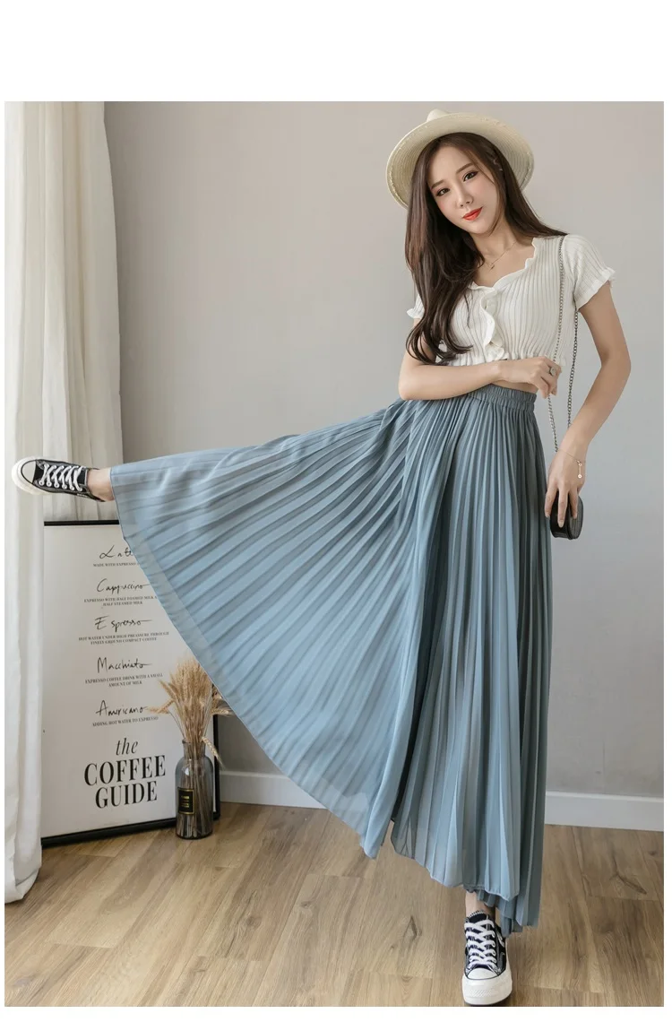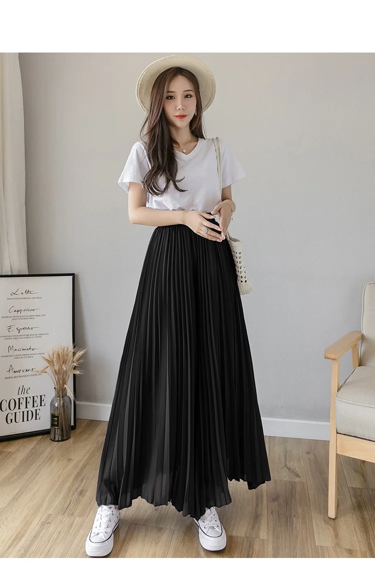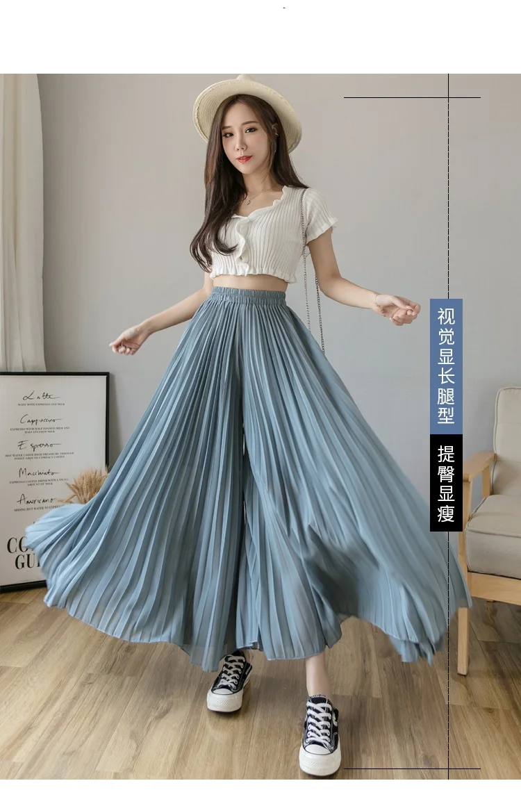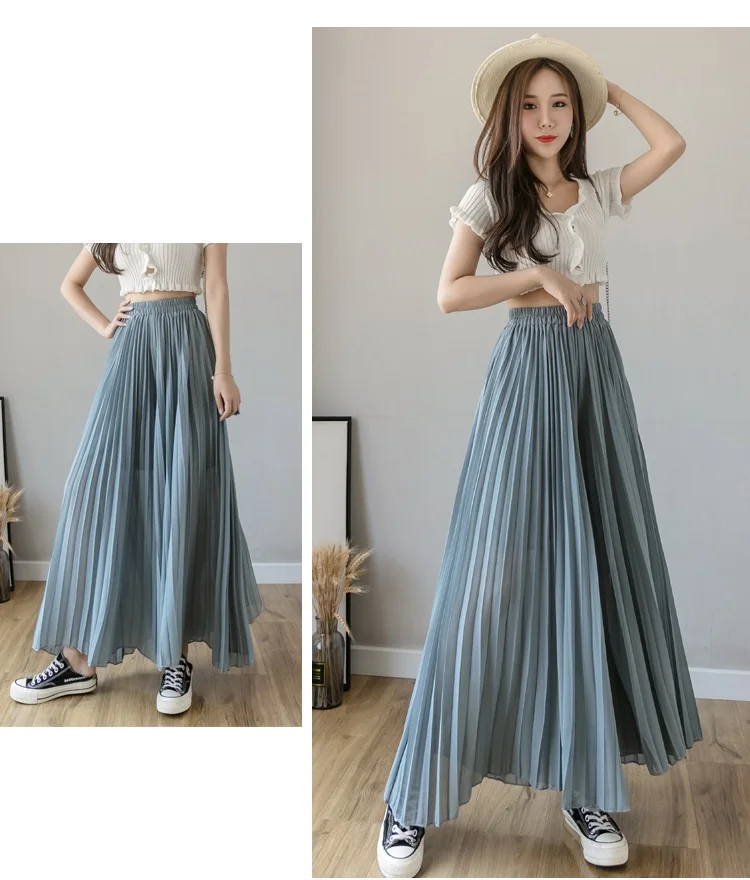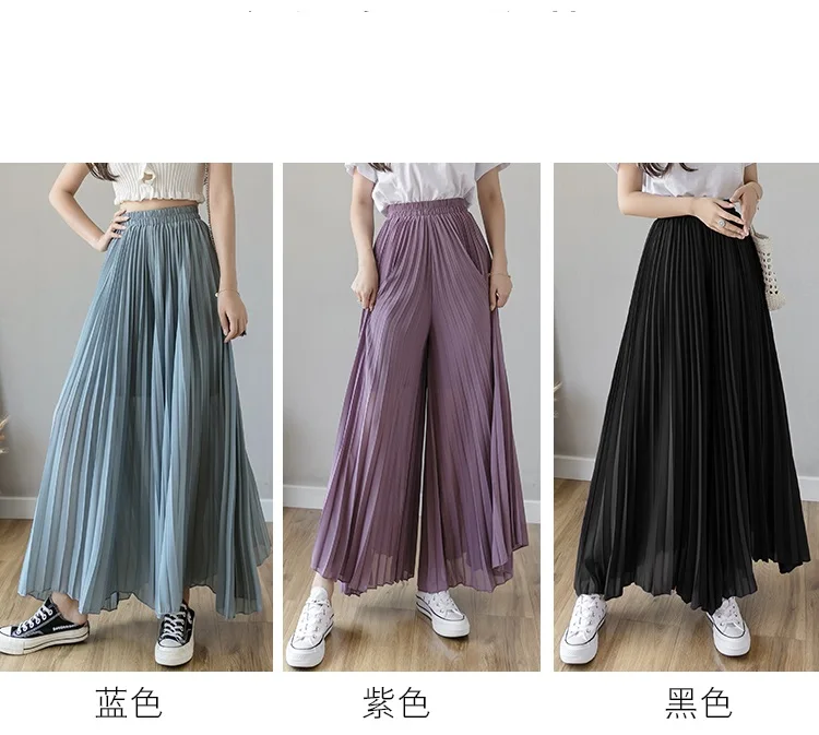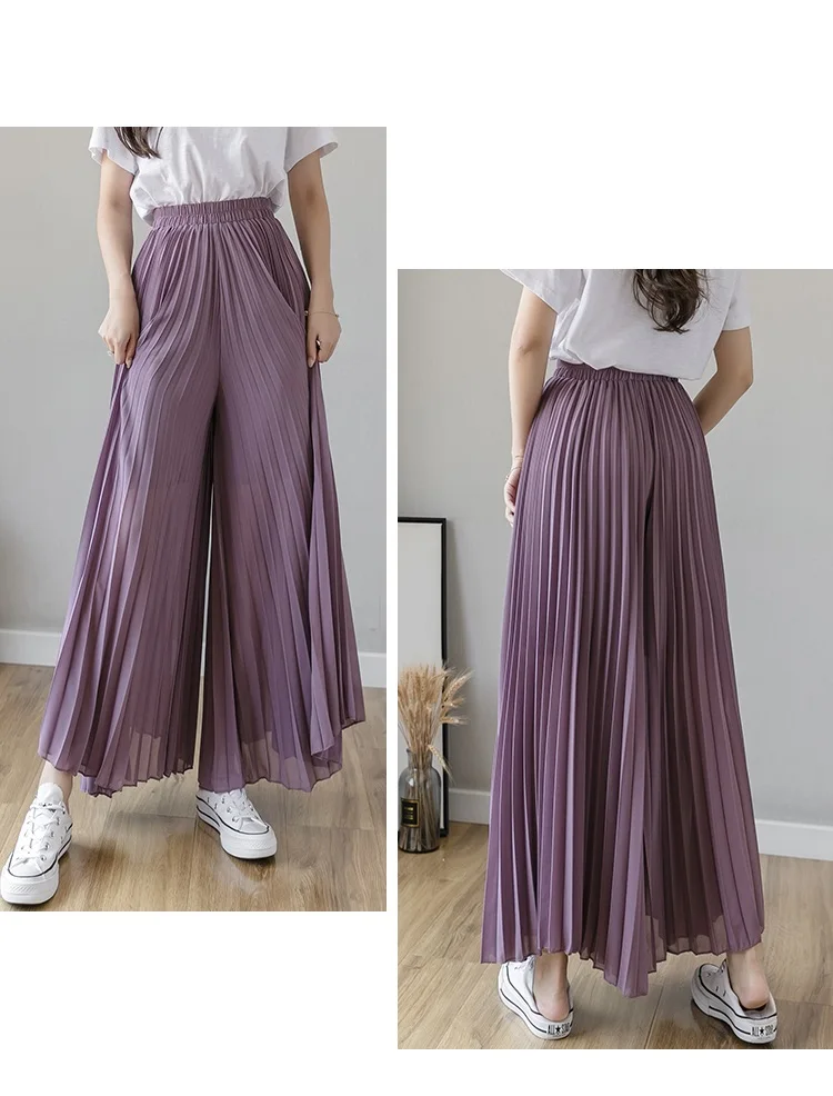 2021 стильные плиссированные юбки Брюки для женщин свободные шифоно...