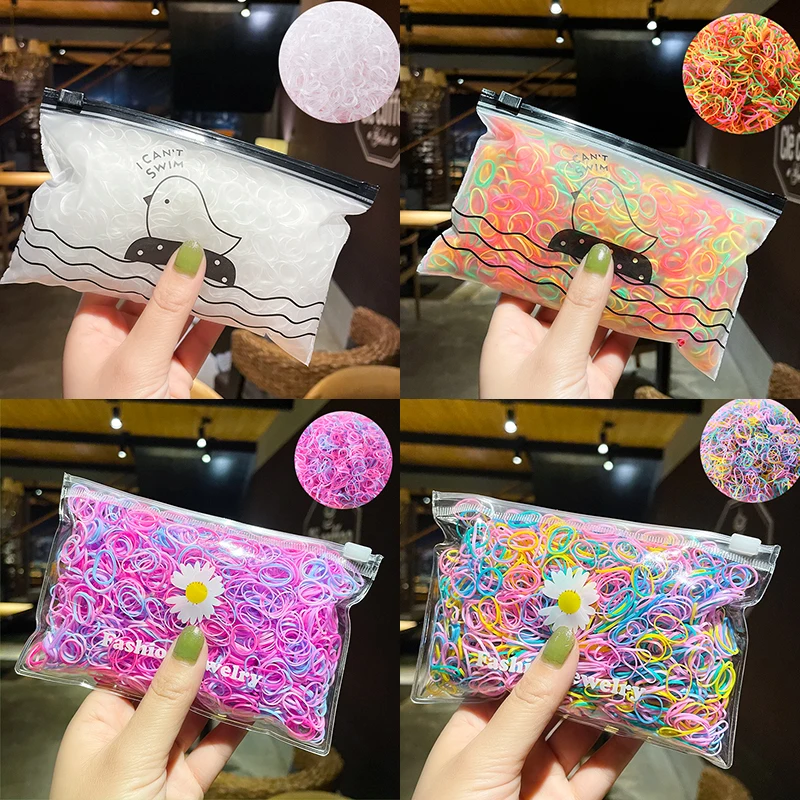 1000 шт.упак. для девочек цветные маленькие одноразовые резиновые резинки с завязками для тканью; Прическа хвостик; В наличии; Резинка для волос, обтянутая тканью; Ремешки; Модные аксессуары для волос