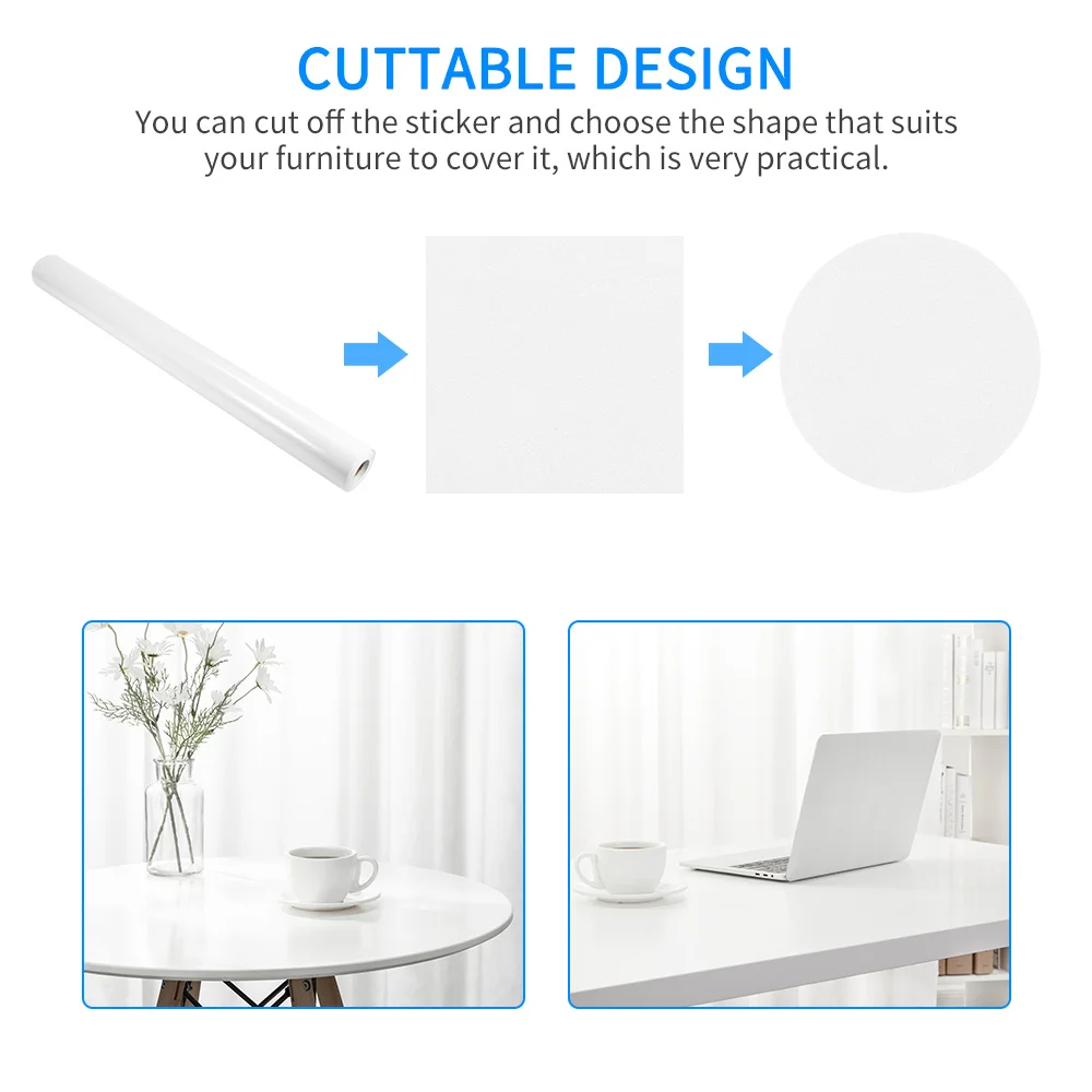 Вы можете отрезать наклейку и выбрать форму, подходящую для покрытия вашей мебели, что очень практично.