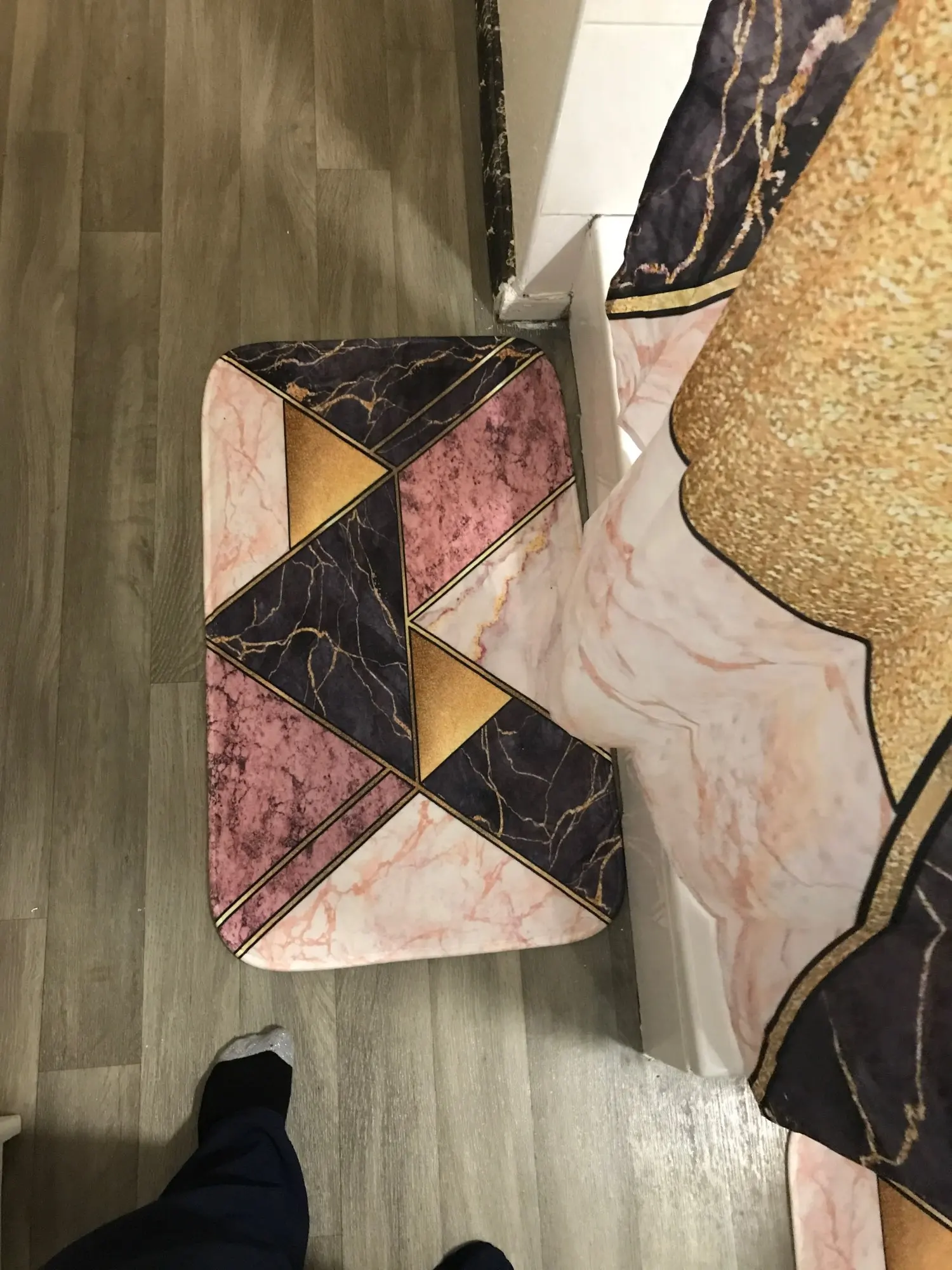 Заказ доставлен быстро. Хорошая упаковка. Все доставлено целым. Занавеска тканевая - хорошего качества. Коврики мягкие , как будут впитывать воду пока не знаю.