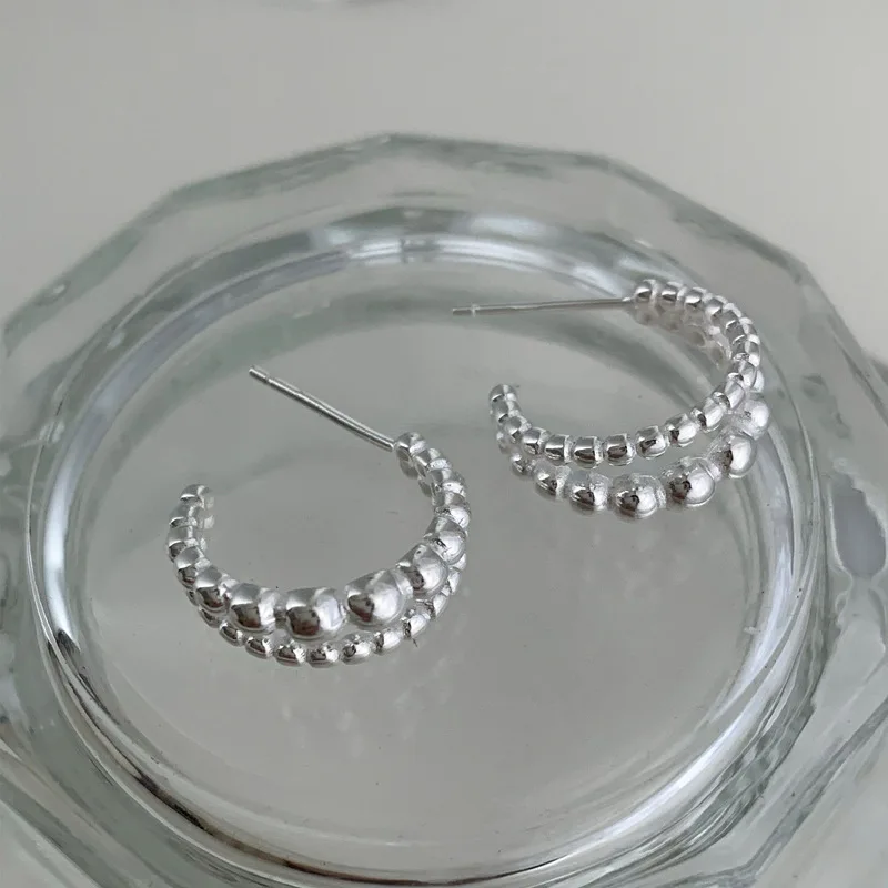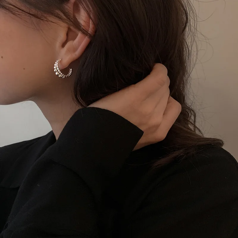 Крутые серьги с-образными бусинами в стиле панк, двухслойные серьги в форме гороха для девочек, женские серьги, подарок на день рождения