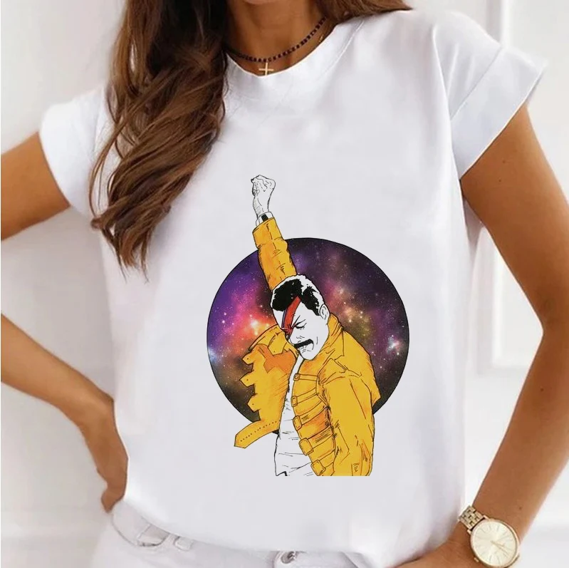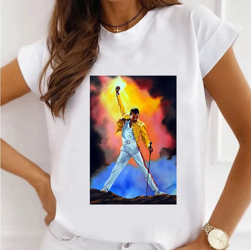 Женские летние футболки с коротким рукавом, с принтом Queen Freddie Mercury, повседневные топы в стиле Харадзюку