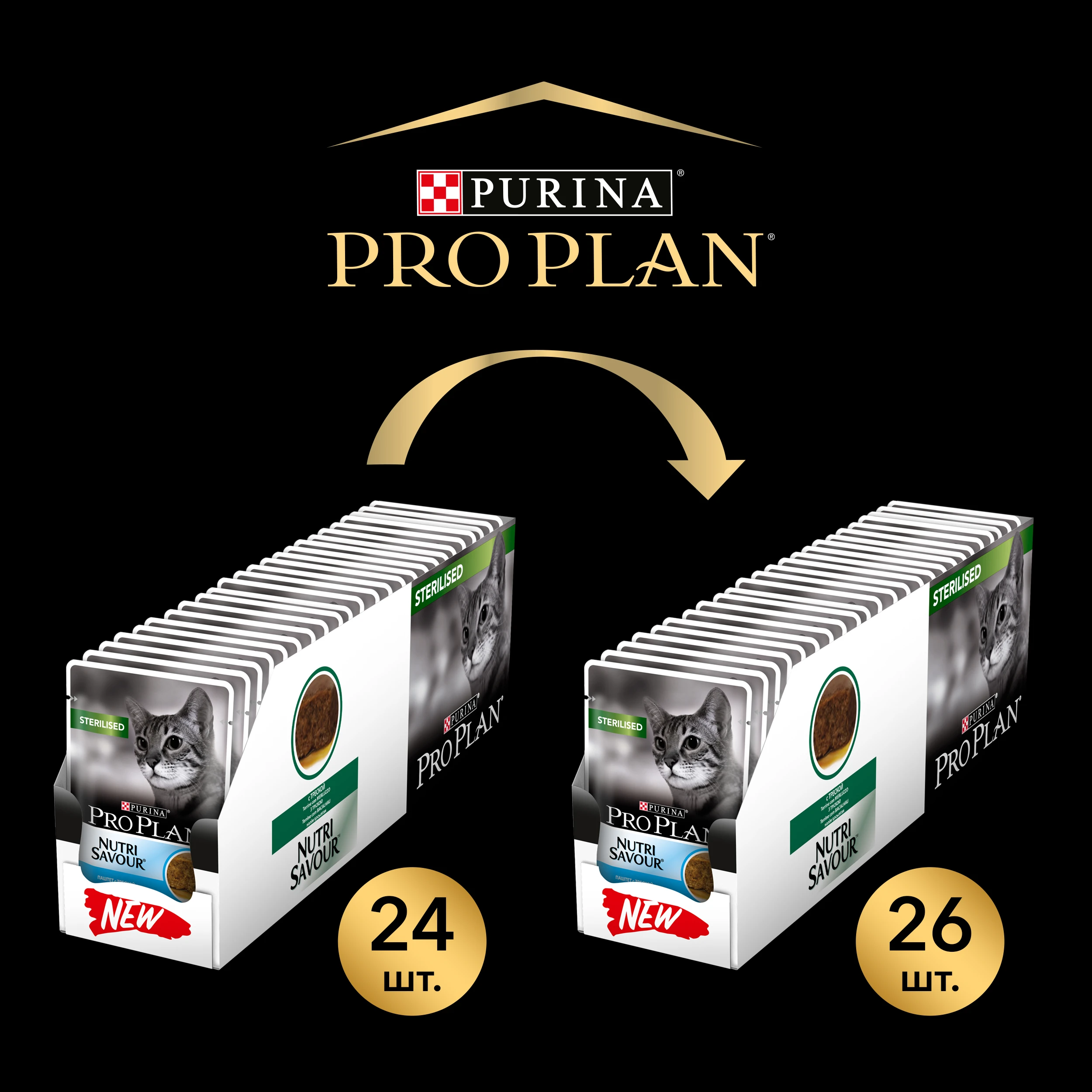 Влажный корм Pro Plan NutriSavour для взрослых стерилизованных кошек, паштет с треской, Пауч, 85 г*24