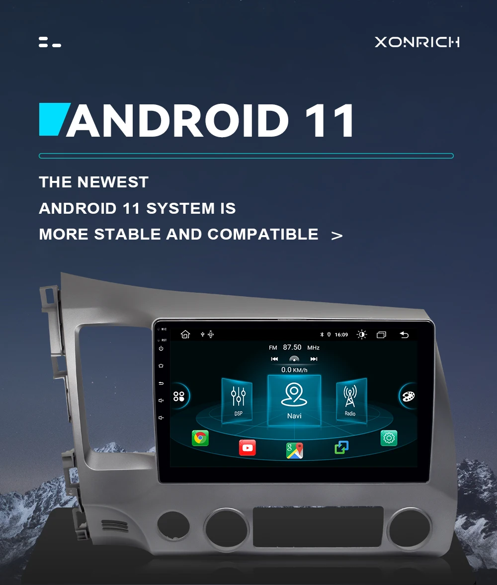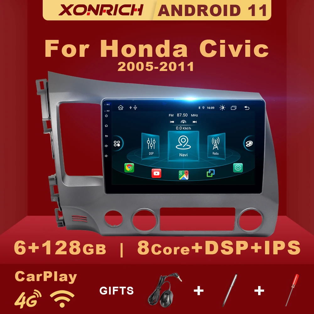 Автомобильный мультимедийный плеер 6 ГБ Android 11 для Honda Civic 8 2005-2011 радио-навигация GPS AI Голосовое управление Carplay Wifi RDS IPS