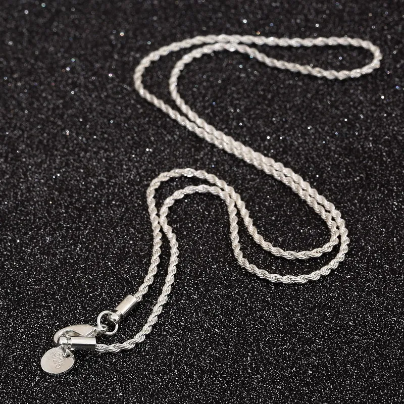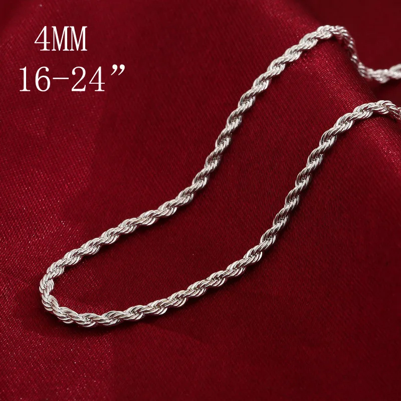 Ожерелье из серебра 925 пробы, серебряная цепочка 4 мм, витая веревка и цепь, ювелирные изделия для мужчин и женщин, подарок