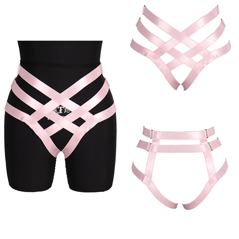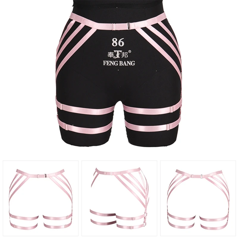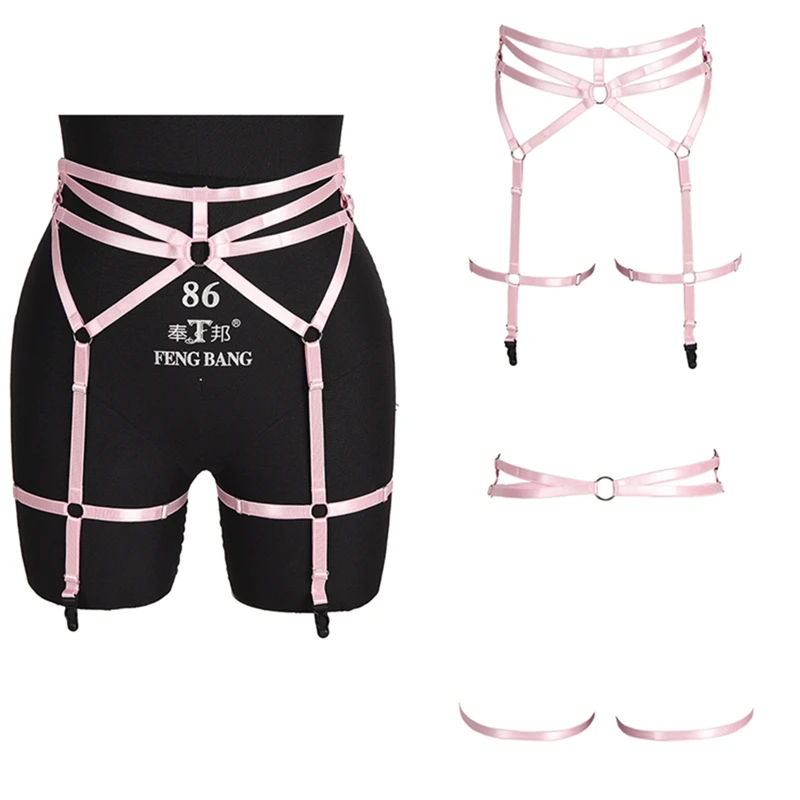 Кавайный розовый пояс для чулок, полая бандажная портупея для тела, эластичная готическая одежда для фетиша, женские чулки на талию, ремни на пояс