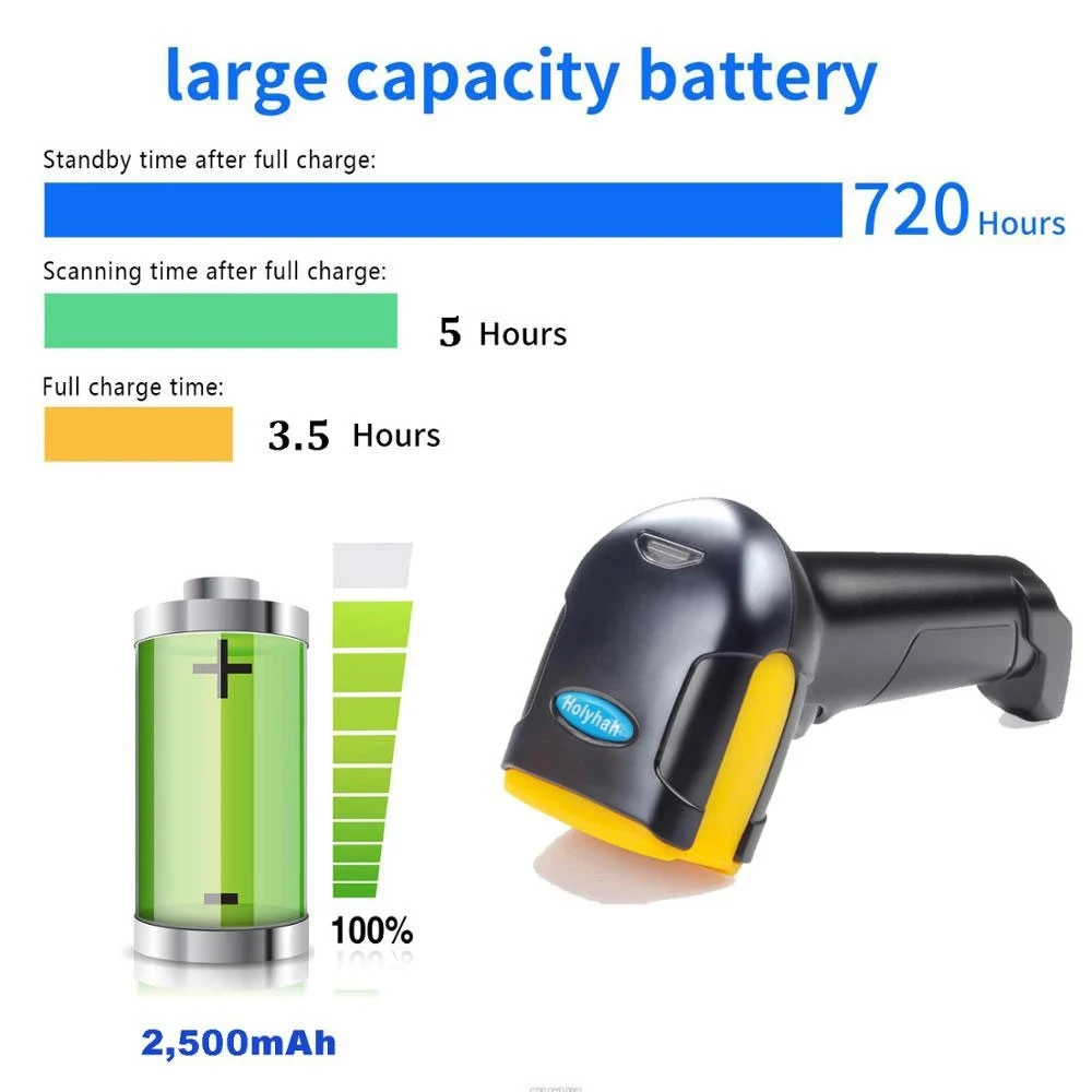 1. 1D и 2D сканер штрих-кодов: быстро считывает различные виды 1D и 2D штрих-кодов, включая QR, матрицу данных, PDF417, UPC/EAN, код 128 и т. Д.2. Поддержка штрих-кода экрана, считывание штрих-кодов на вашем телефоне и экране ноутбука. Отличное удобство для мобильной оплаты в магазинах и супермаркетах.3. Проводное соединение Bluetooth и 2,4G, подключите его к телефону и планшету через Bluetooth. И вы также можете подключиться к не-bluetooth компьютеру при помощи 2,4 ГГц адаптер переменного тока, который поставляется с посылка.4. Два режима: сканер оснащен двумя различными режимами, активация касанием, автоматическое определение, а также режим инвентаризации для автономного хранения данных.6. Длительный срок службы батареи: с батареей 2500 мАч сканер используется для 5 часов