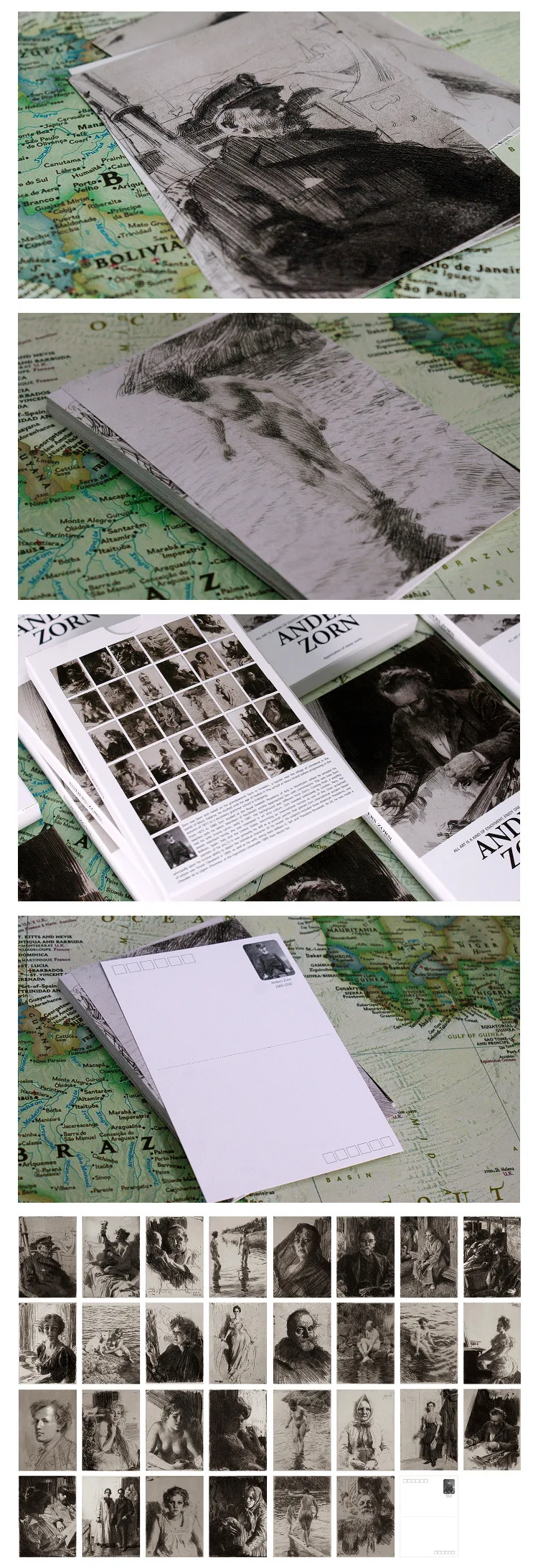 Открытки с конвертами и изображениями известных художников, 30 лист...