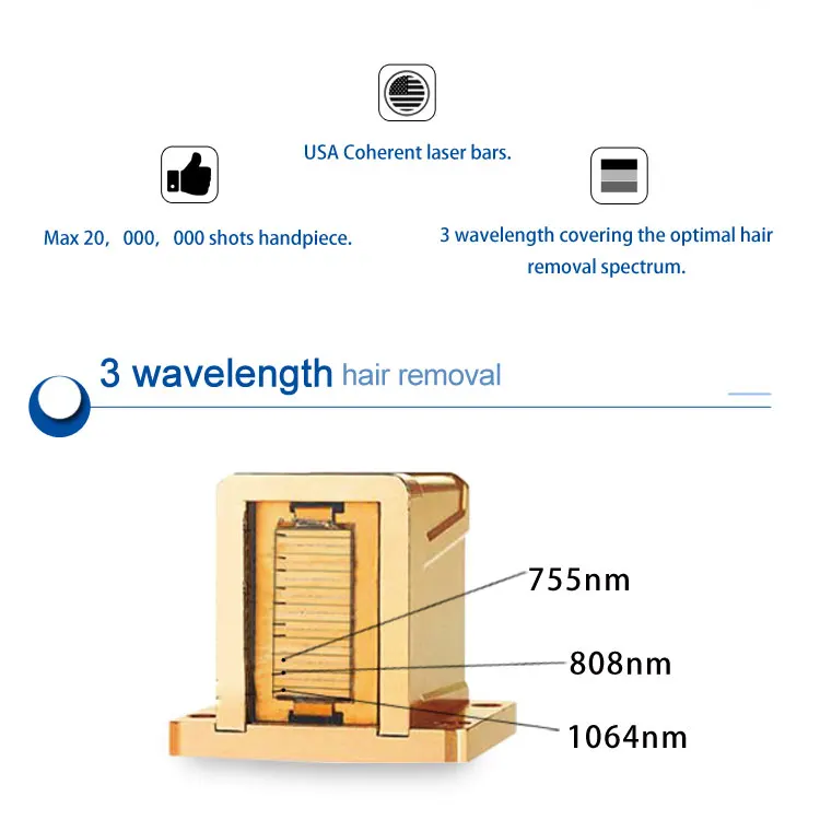 5. Гарантия: мощность, водяной насос, экран2Лет гарантии,3 волны/808нм Диодная лазерная ручка может обеспечить20 миллионов снимков.