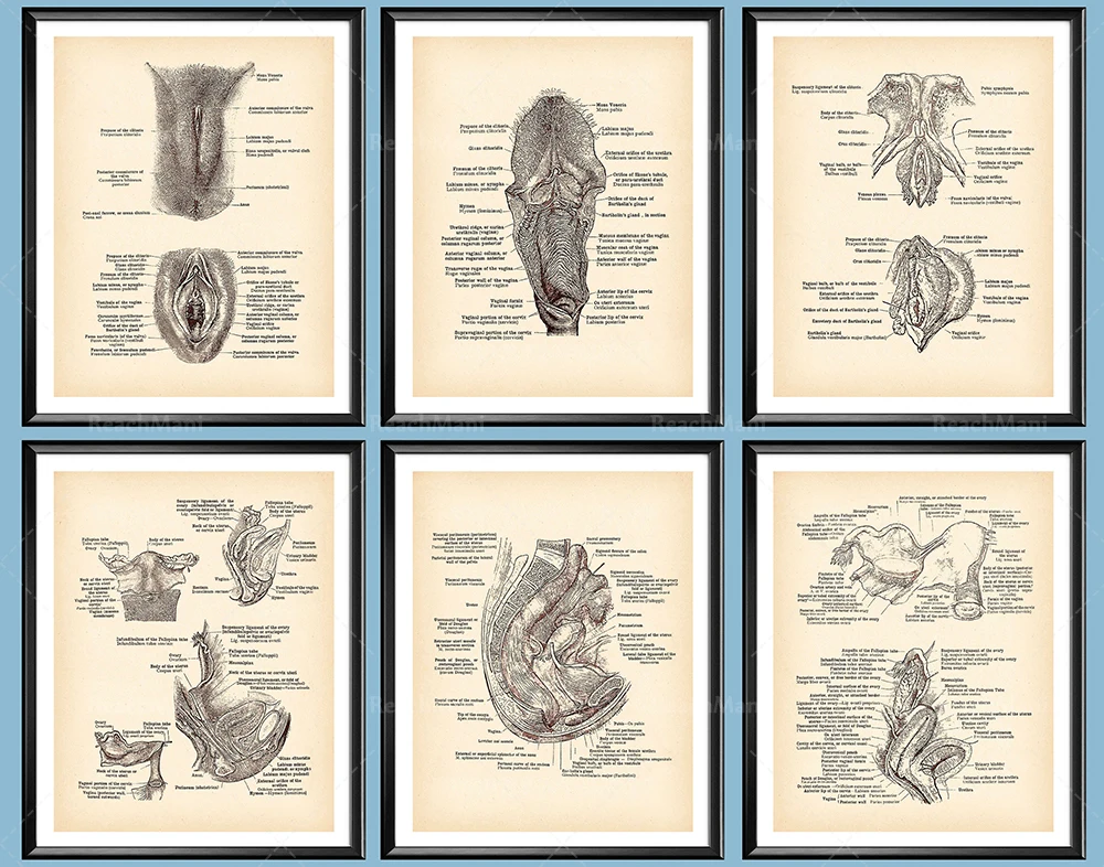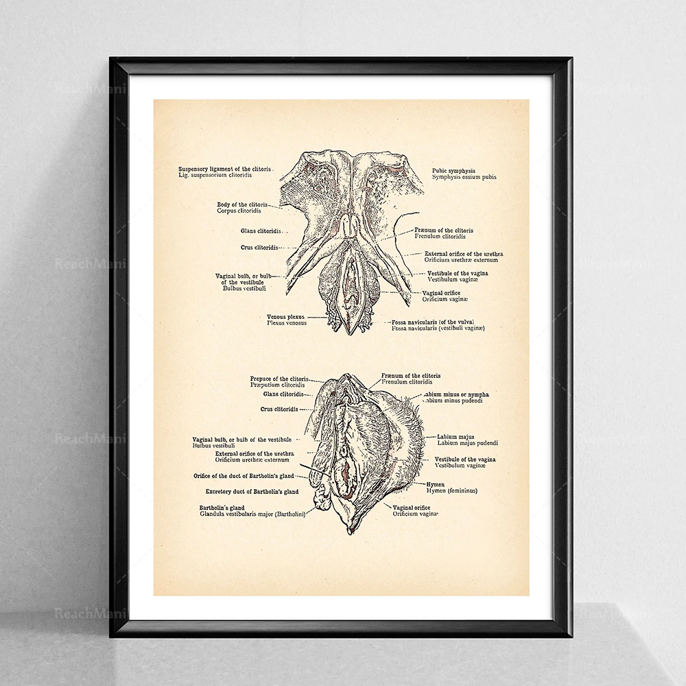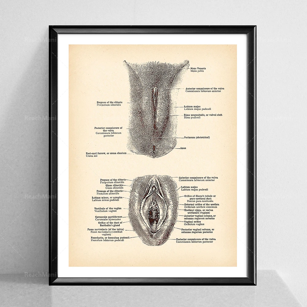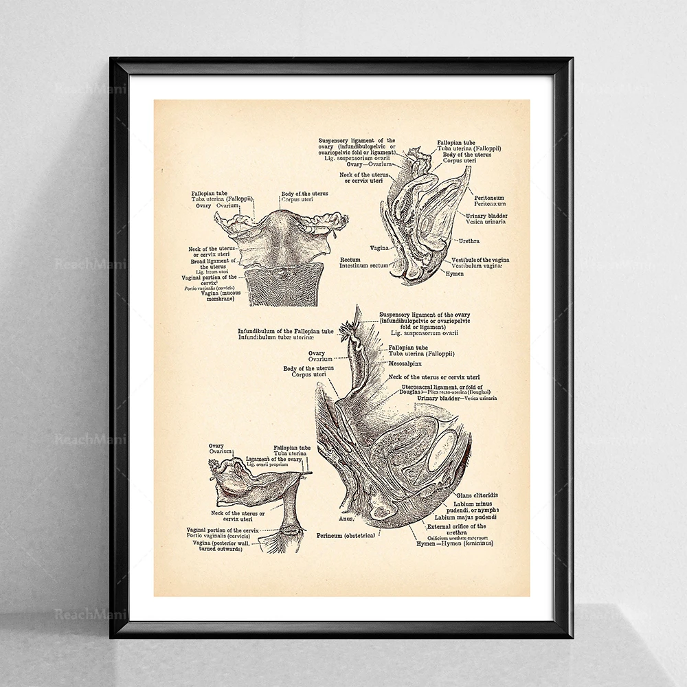 Отпечаток влагалища женские половые органы Винтаж анатомический плакат репродуктивная система мочевая система принт гинекология искусство гинеколог G